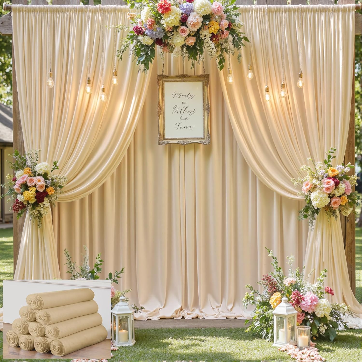 50×12 ft Wrinkle Free Beige Backdrop Curtain for Weddings Parties, 10 Panels 12ft Silky Polyester Wedding Drapes Backdrop Photo Back Drop Cloth for Birthday Baby Shower Photography Backgrounds