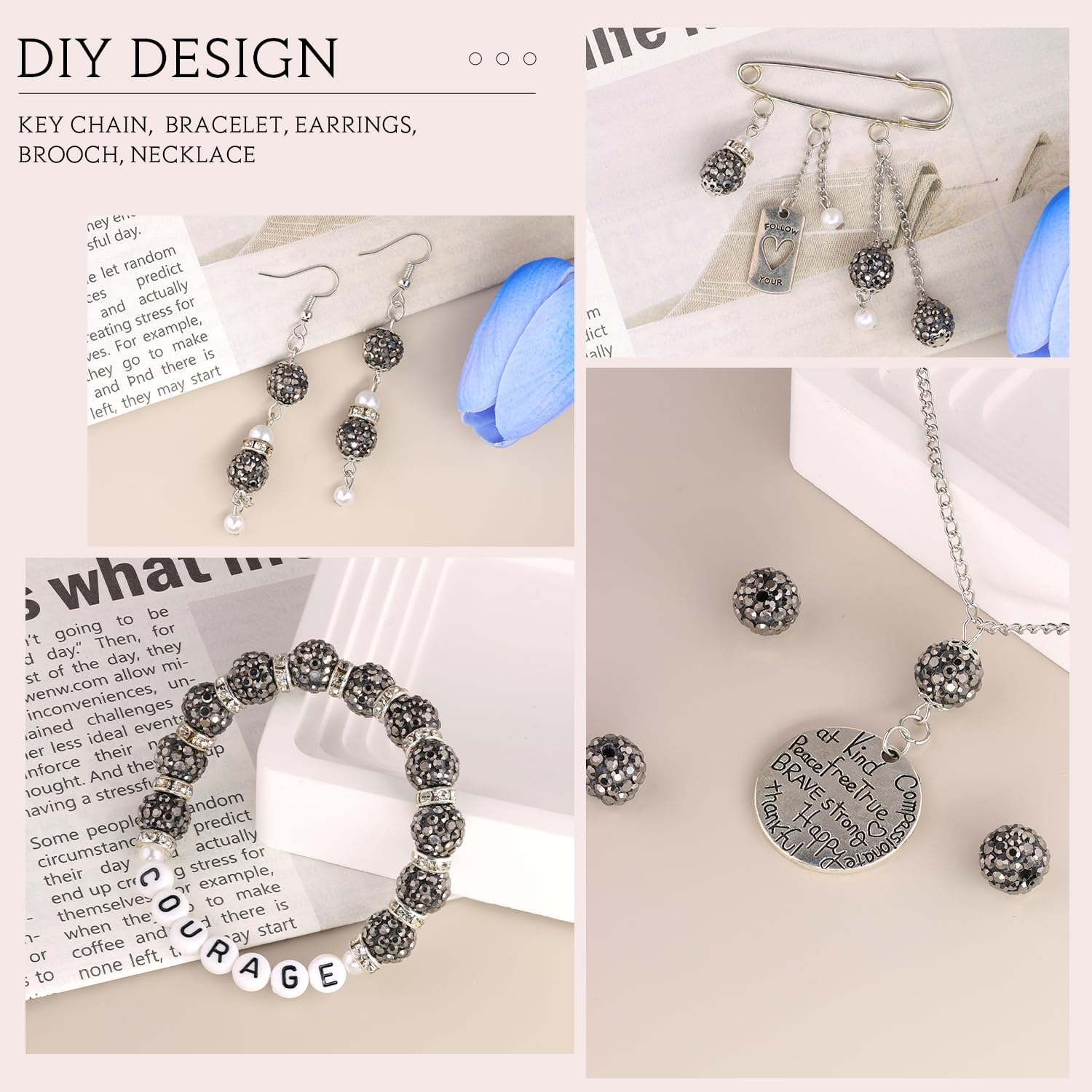 200pcs 10mm Hematite Rhinestone Beads for Jewelry Making, Shiny Round Shamballa Disco Ball Beads Bulk, Sparkle Crystal Clay Christmas for Bracelet Baseball Necklace Earring Crafting and DIY