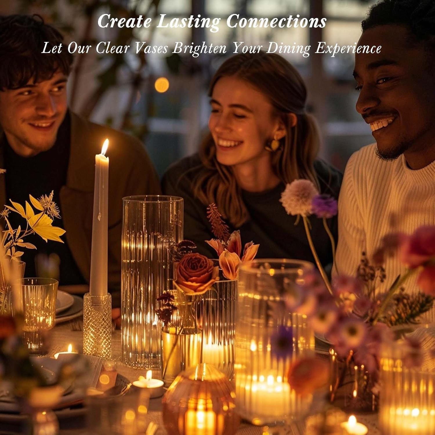 - 🌷【SIMPLE AND ELEGANT DESIGN】: The 12-pack 6-inch tall clear straight borosilicate glass vase features straight, textured surface that reveals unparalleled purity of beauty