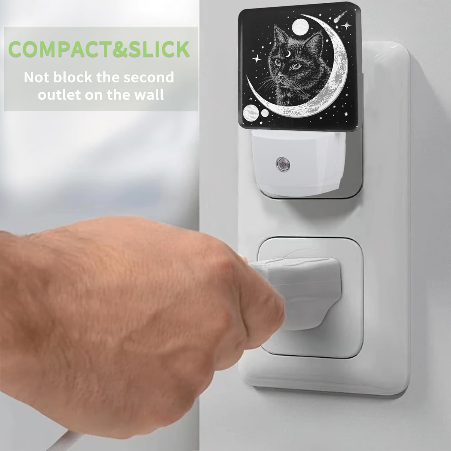 Black Cat Night Light, Moon Night Light Plug into Wall with Dusk to Dawn Sensor, LED Lamp Energy Saving Lights for Men Women Boys Girls,Lamp for Bedroom Bathroom Hallway