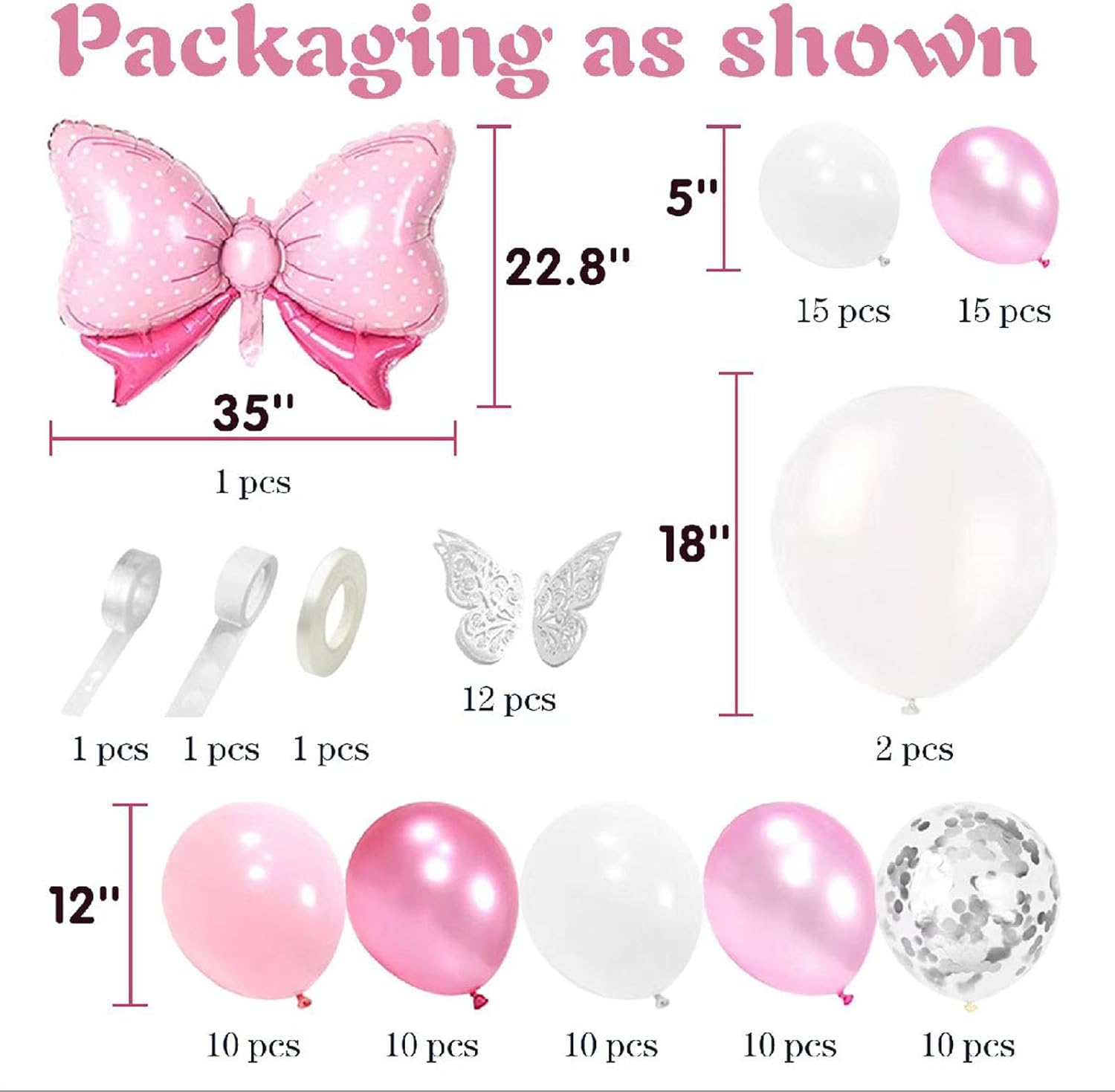 - You will receive 3 pcs pink heart-shaped balloons with a diameter of 18 inches, 1pcs 36-inch pink bow balloon,1 roll of ribbon, and 1 straw. Heart balloons and pink bow ballooncan create a romantic and joyful atmosphere for you, allowing you and your loved ones to share the most unforgettable moments together.