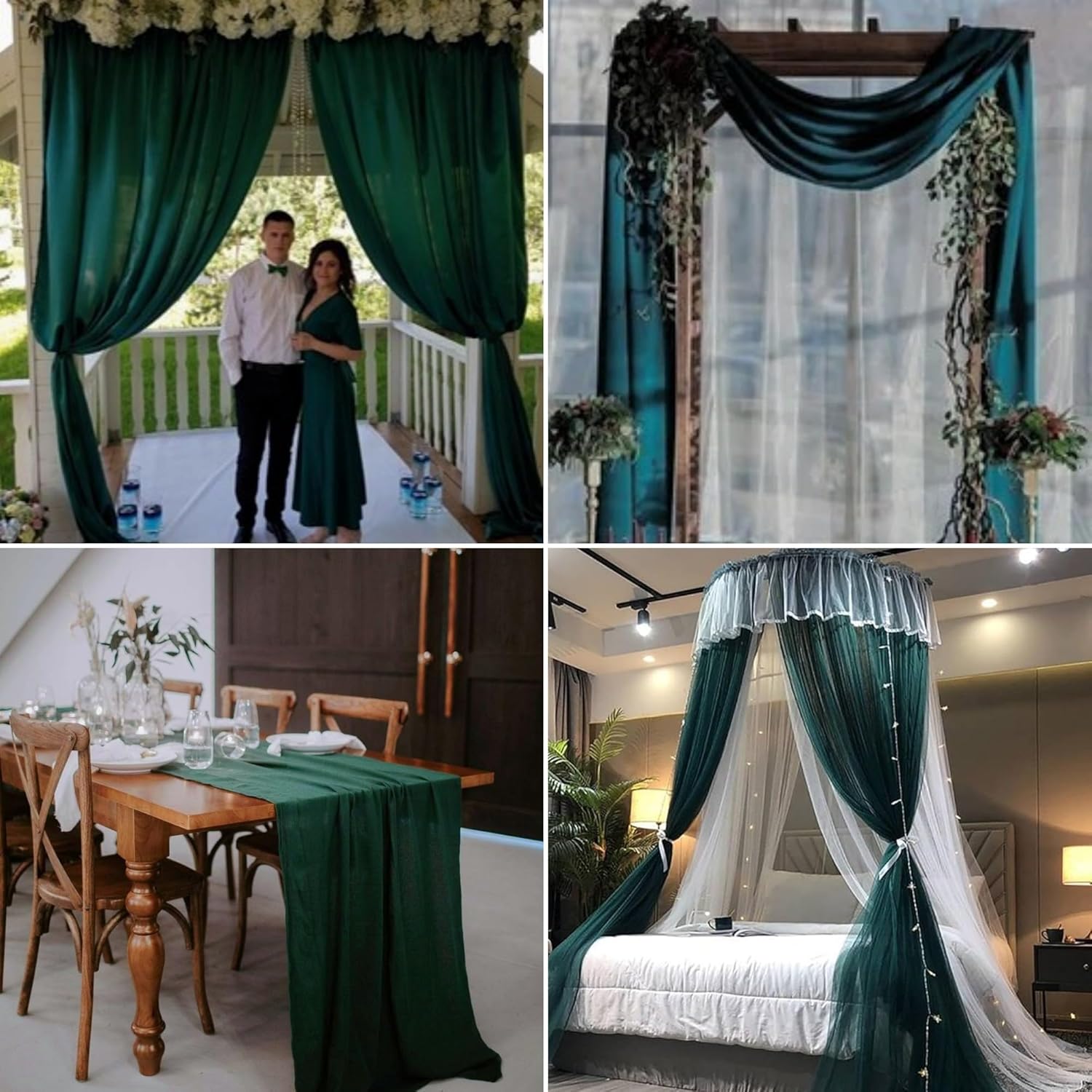 6 Panels Emerald Green Wedding Arch Drapery 28" x20Ft Wedding Arch Draping Fabric Chiffon Fabric Drape Sheer Backdrop Curtain for Nuptials Party Ceremony Birthday Arbor Drapery Reception Ceiling Décor