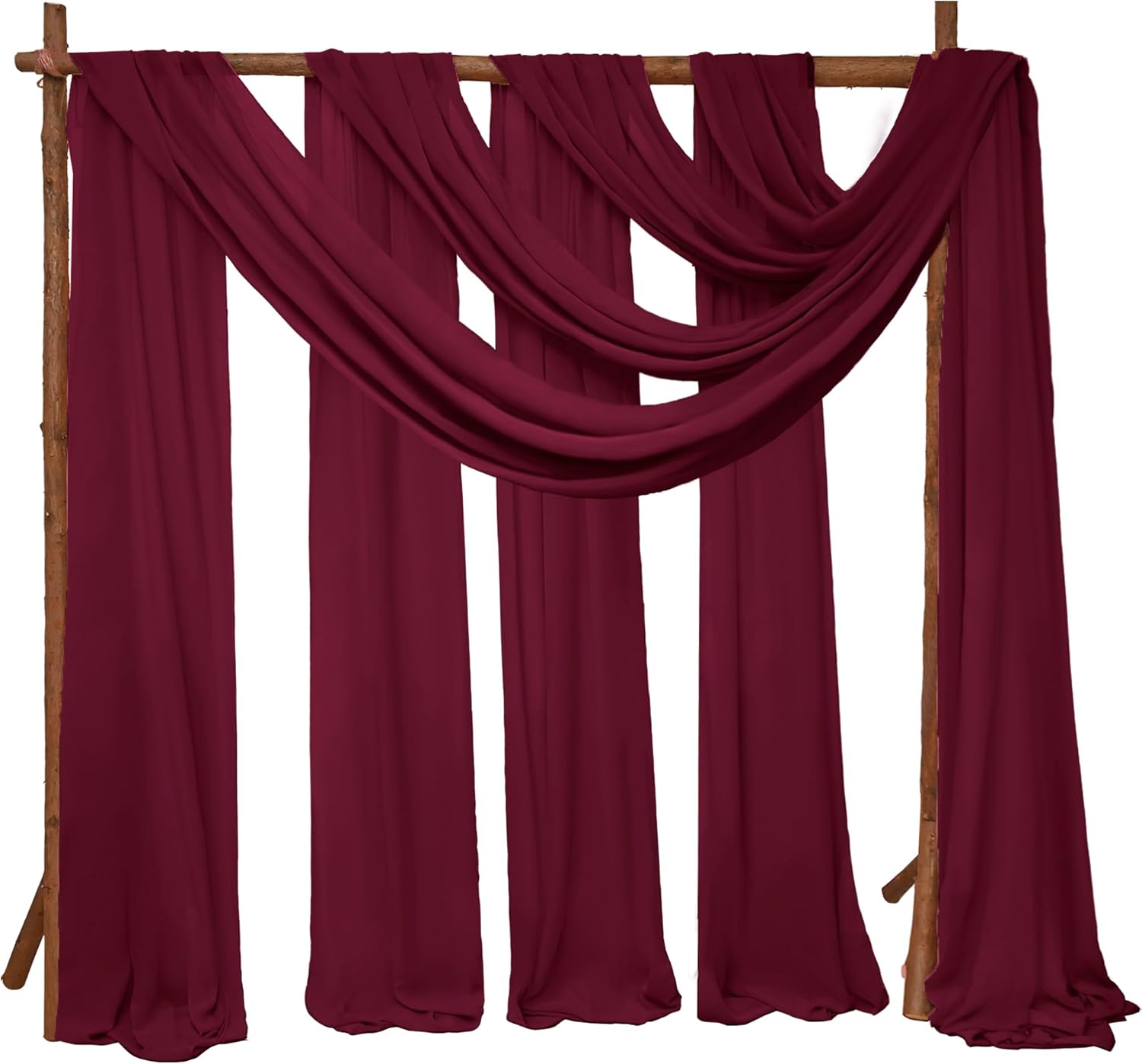 6 Panels Burgundy Wedding Arch Drapery 28" x20Ft Wedding Arch Draping Fabric Chiffon Fabric Drape Sheer Backdrop Curtain for Weddings Party Swag Ceremony Birthday Arbor Drapery Reception Ceiling Décor