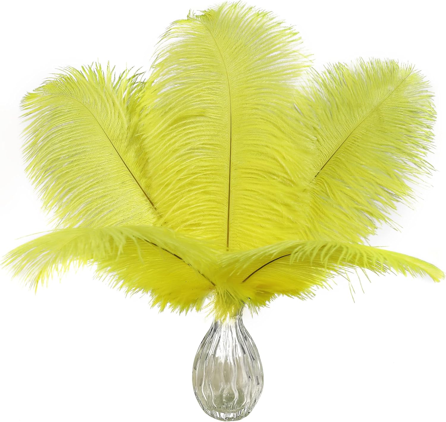 Ballinger Fluorescent Yellow Ostrich Feathers - 24Pcs 8-10inch Feathers Bulk for Vase, Party Centerpieces, Mardi Gras Decorations and Home Decor