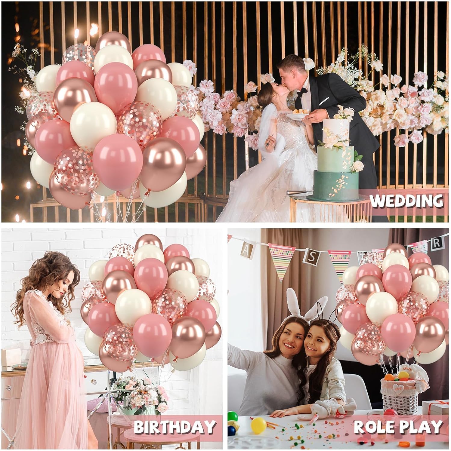 - What You Get - The dusty pink balloons include 50 balloons, 4 distinct colors: dusty pink balloons x 20, ivory white balloons x 15, metallic rose gold balloons x 10, confetti rose gold balloons x 5. Accompanying by a 10m ribbon. These striking and captivating hues will beautifully enhance your memorable and enjoyable moments!