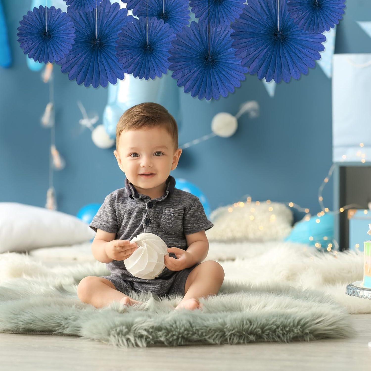 20 Pcs Navy Blue Hanging Paper Fan, Hanging Honeycomb Round Paper Fans for Weddings, Birthdays, Easter, Baby Showers, Classroom, Events Ceiling Party Supplies Decorations