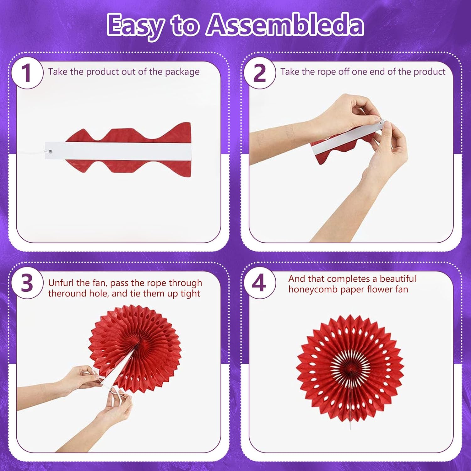 20 Pcs Deep Purple Hanging Paper Fan, Hanging Honeycomb Round Paper Fans for Weddings, Birthdays, Easter, Baby Showers, Classroom, Events Ceiling Party Supplies Decorations