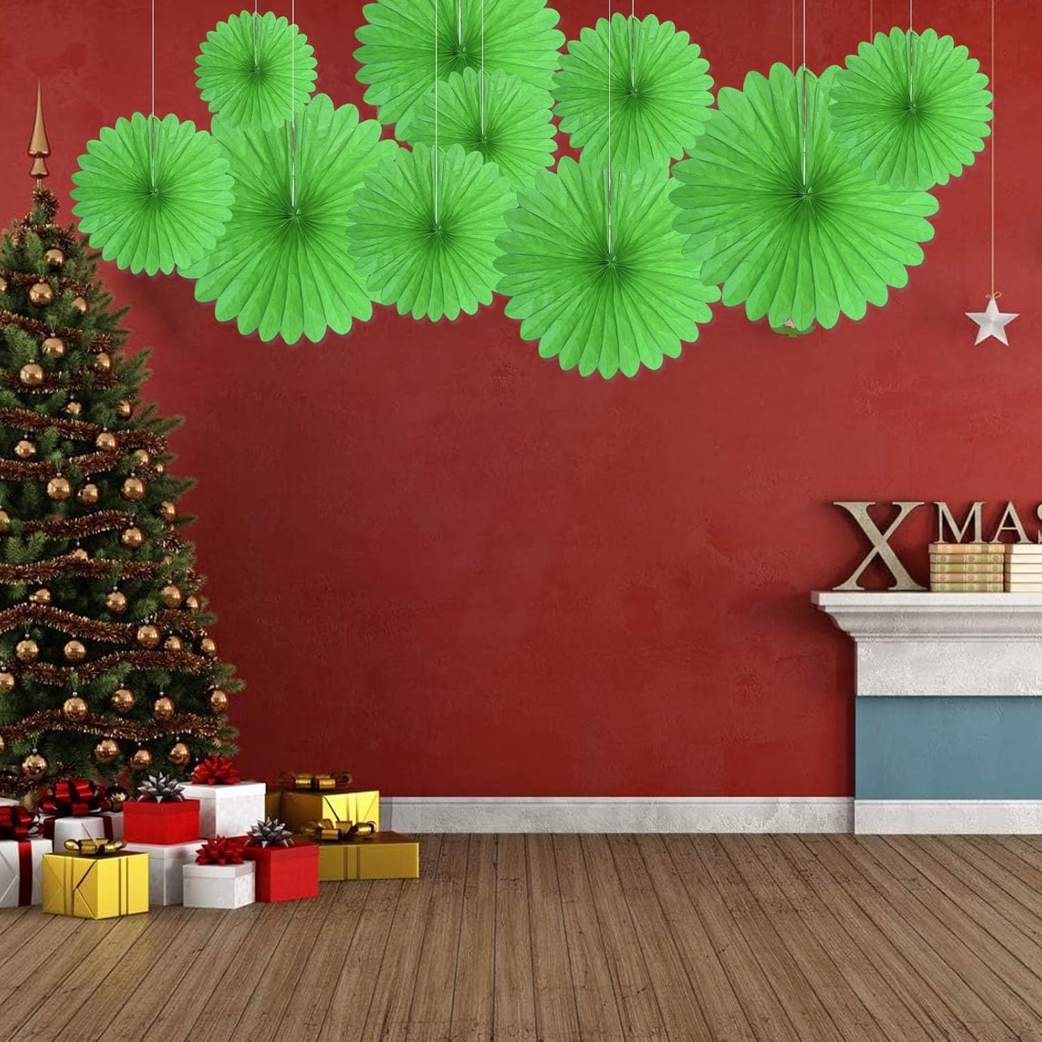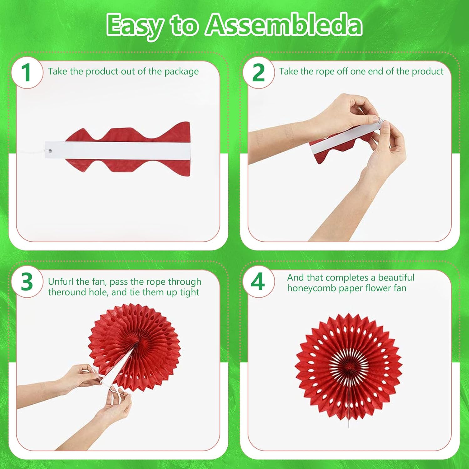 - 【Hanging paper fan set】Paper fan set includes 20 paper fans of different sizes, among which the paper flower fan size is 14 inches * 3, 12 inches * 5, 8 inches * 6, and 6 inches*6.