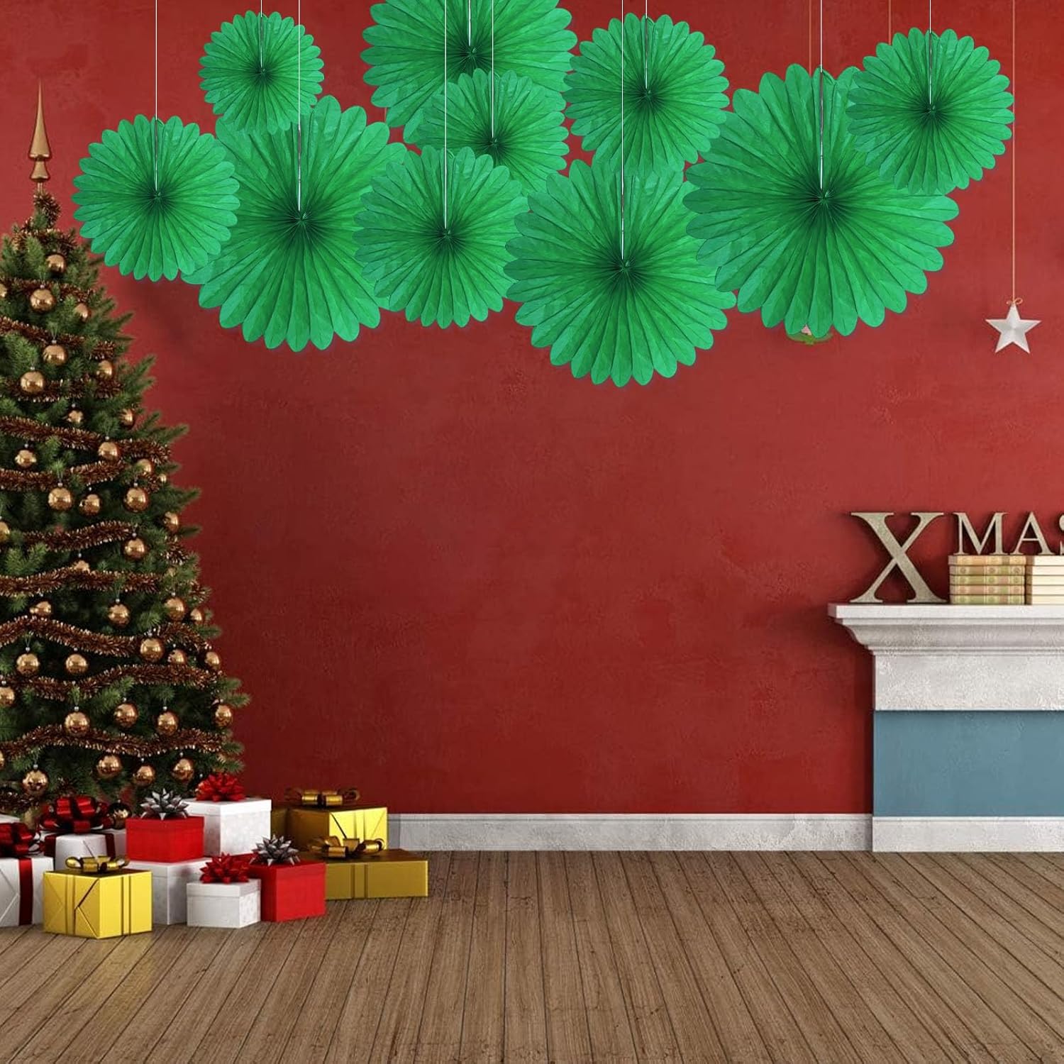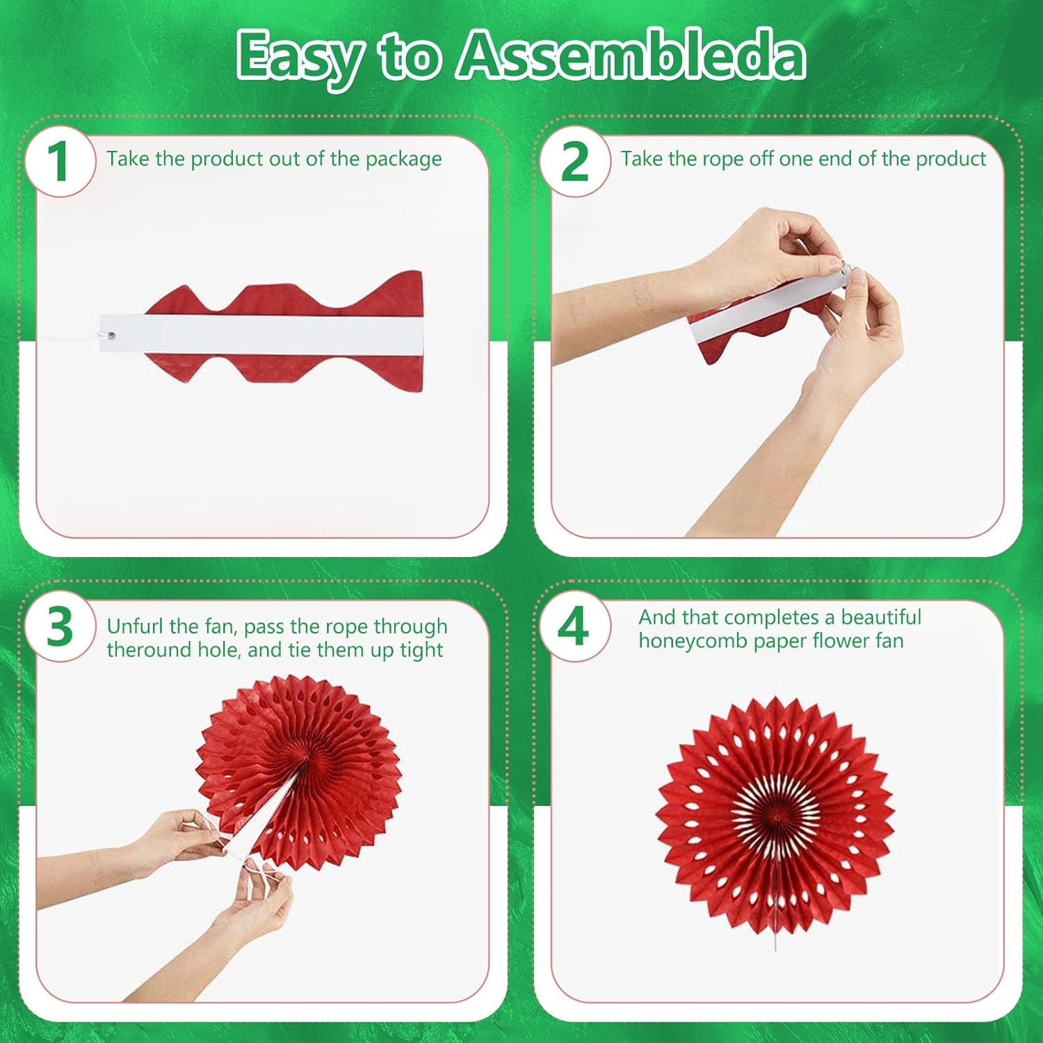 - 【Hanging paper fan set】Paper fan set includes 20 paper fans of different sizes, among which the paper flower fan size is 14 inches * 3, 12 inches * 5, 8 inches * 6, and 6 inches*6.