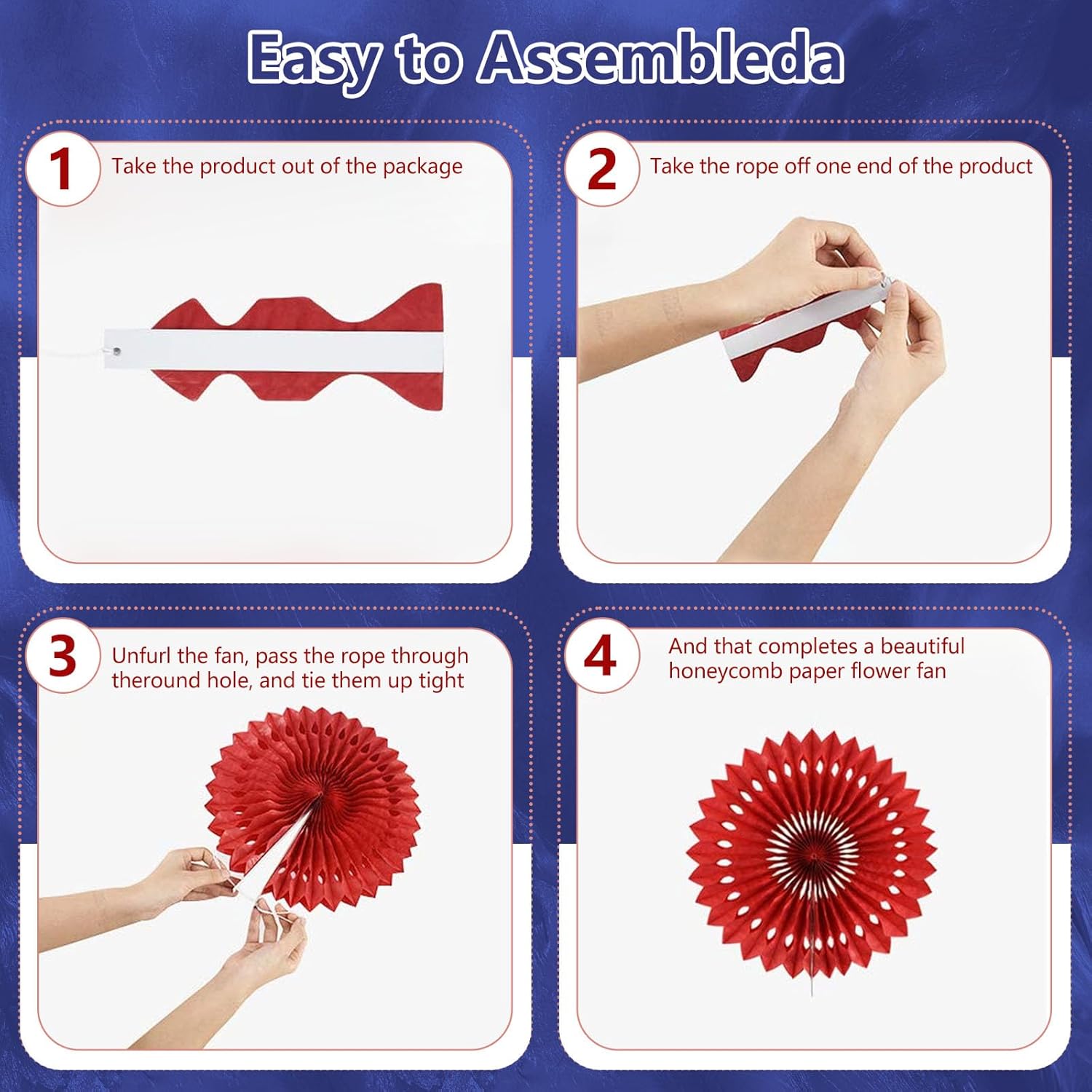 - 【Hanging paper fan set】Paper fan set includes 18 paper fans of different sizes, among which the paper flower fan size is 14 inches * 3, 12 inches * 5, 8 inches * 6, and 6 inches*6.