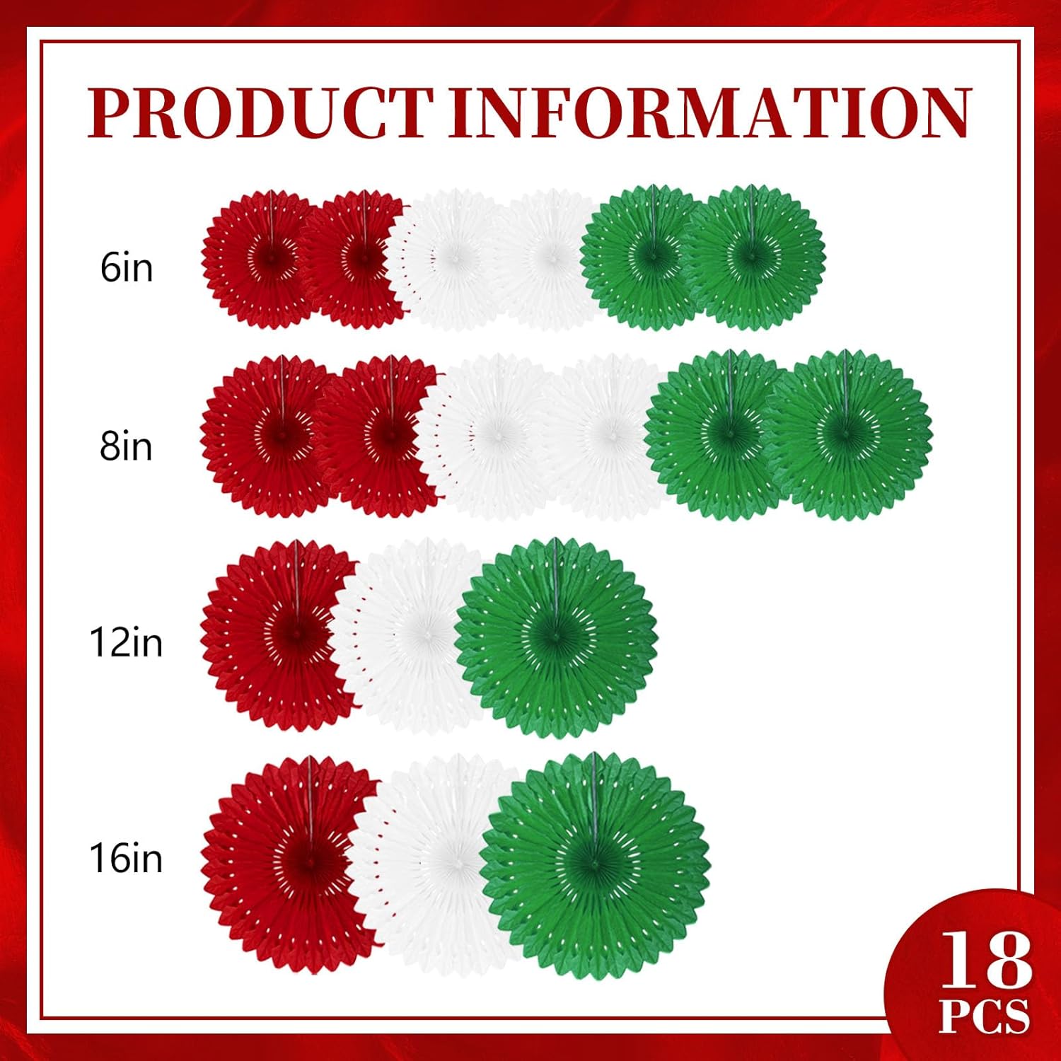 18 Pcs Christmas Hanging Paper Fan, Hanging Honeycomb Round Paper Fans for Weddings, Birthdays, Baby Showers, Classroom, Events Ceiling Party Supplies Decorations