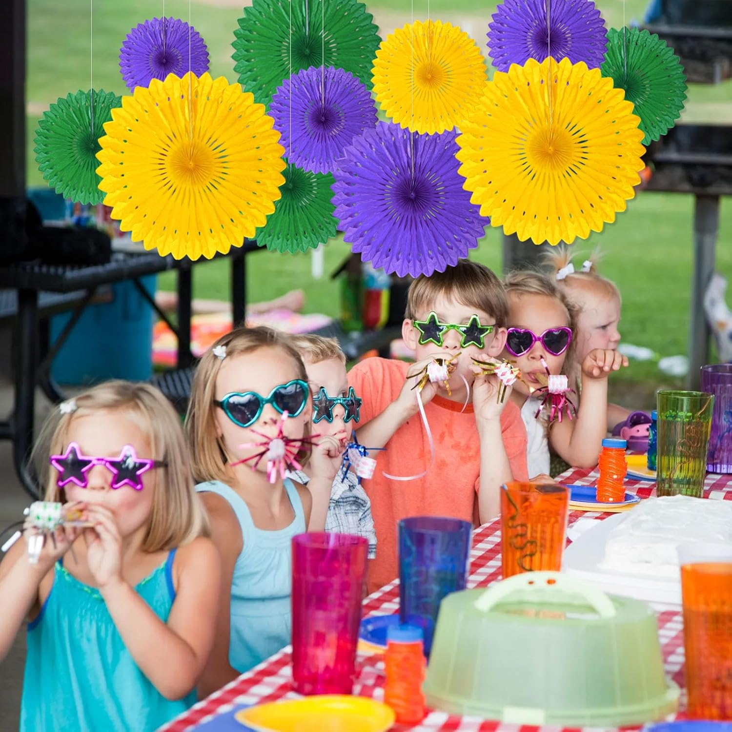 18 Pcs Mardi Gras Hanging Paper Fan, Hanging Honeycomb Round Paper Fans for Weddings, Birthdays, Christmas, Baby Showers, Classroom, Events Ceiling Party Supplies Decorations