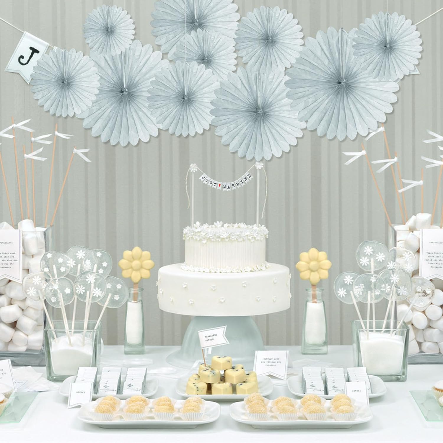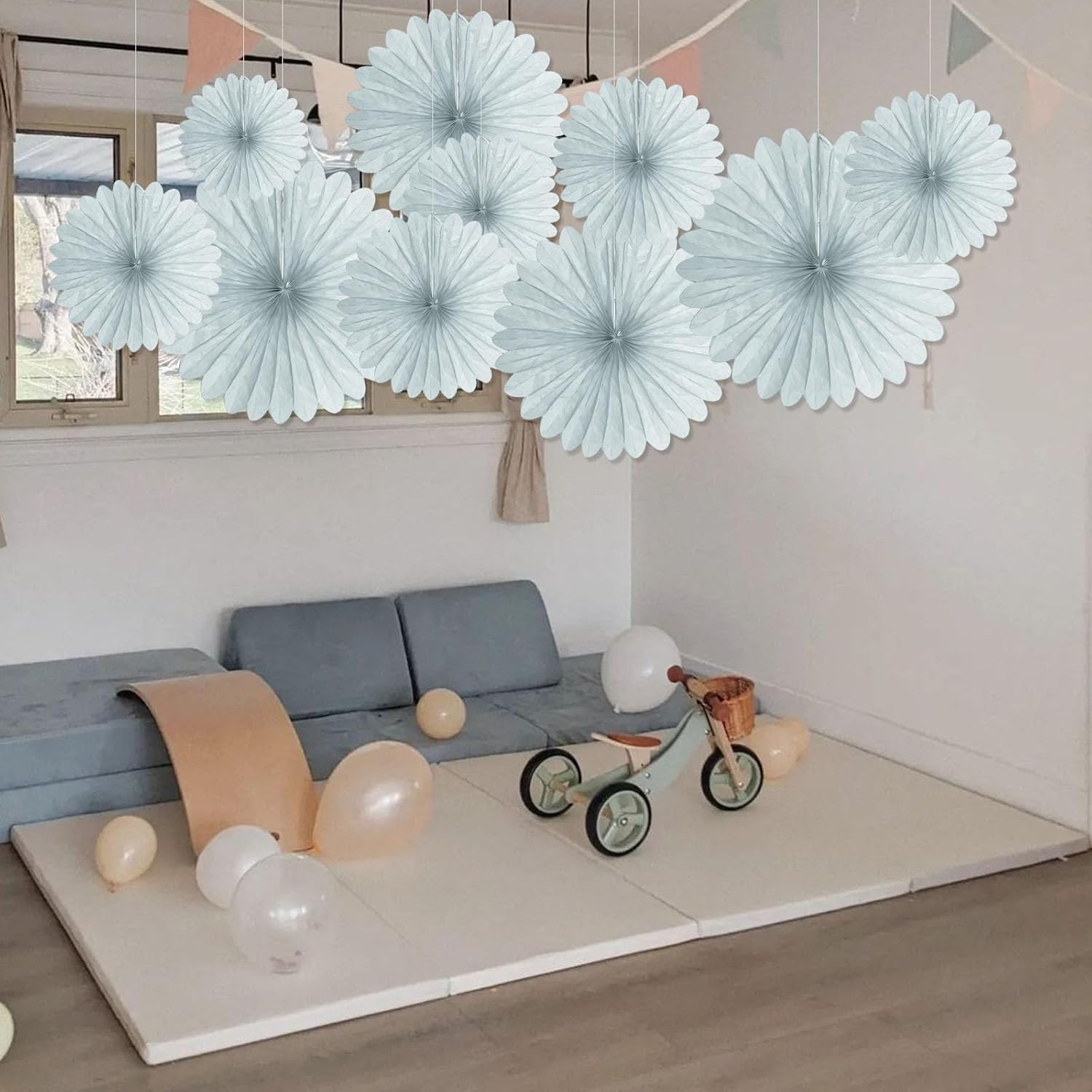 - 18 Pcs Gary Hanging Paper Fan, Hanging Honeycomb Round Paper Fans, Paper Fan Decorations for Weddings, Birthdays, Christmas, Baby Showers, Classroom, Bachelor Ceiling Paper Party Supplies