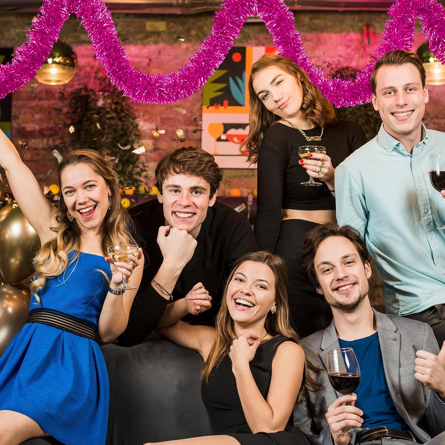 - Add Atmosphere: The metallic garland tinsel reflects light for extra sparkle, create an festive ambience and add more fun and energy to your special party events, you can use it as a background to take photos with your lover, kids, other family members, friends, relatives, classmates to celebrate important days