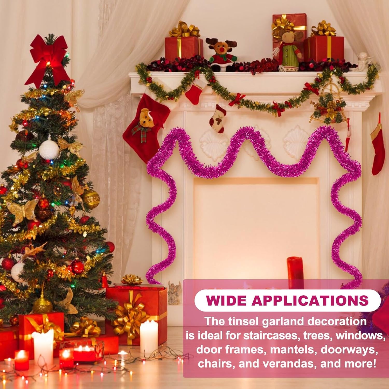 - Easy to Use: You can just hang the tinsel garland ornament on the christmas trees, not need many tools, and if you want to decorate them on the walls or stairs, you can use glue to stick them up, also use scissors to cut to the right length, twist them into various shapes as you like, then hang on to make your home full of joyful feelings