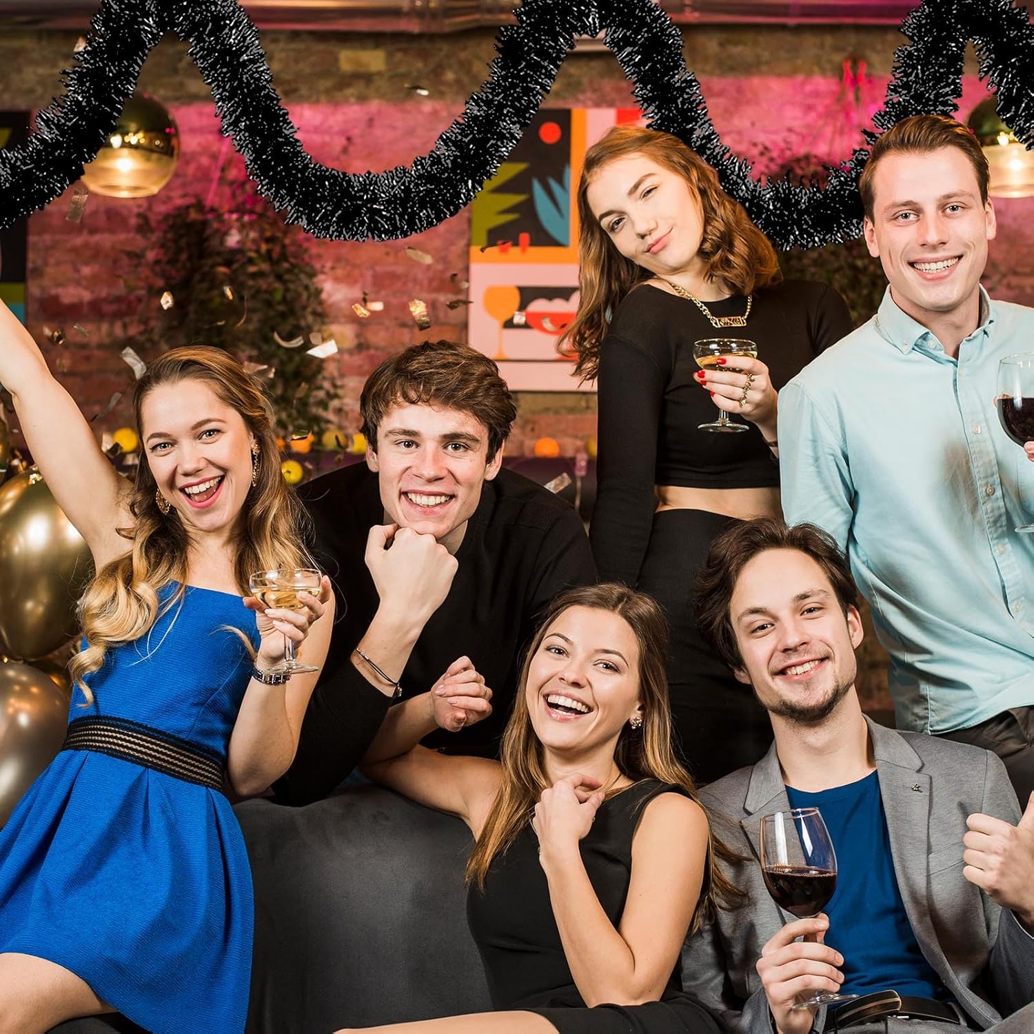 - Add Atmosphere: The metallic garland tinsel reflects light for extra sparkle, create an festive ambience and add more fun and energy to your special party events, you can use it as a background to take photos with your lover, kids, other family members, friends, relatives, classmates to celebrate important days