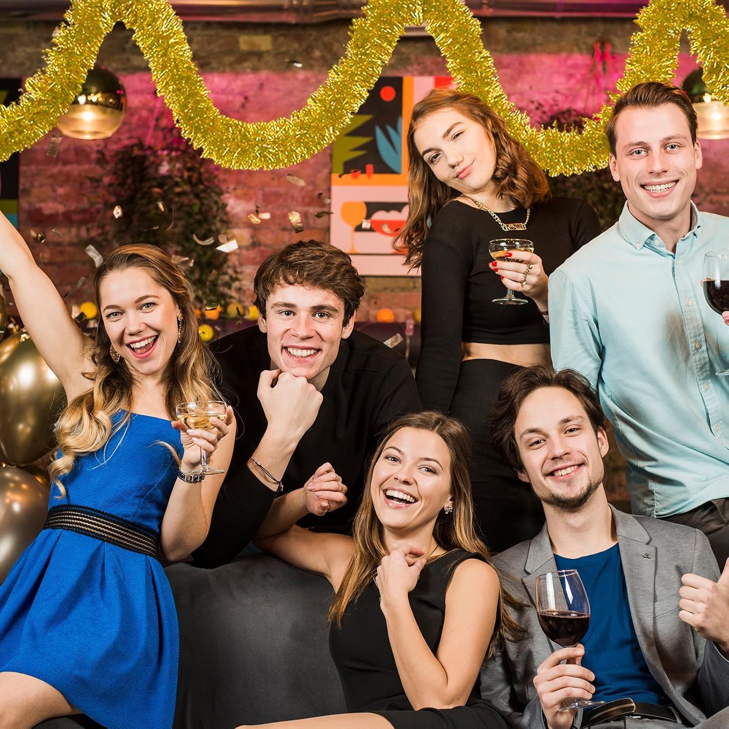 - Add Atmosphere: The metallic garland tinsel reflects light for extra sparkle, create an festive ambience and add more fun and energy to your special party events, you can use it as a background to take photos with your lover, kids, other family members, friends, relatives, classmates to celebrate important days