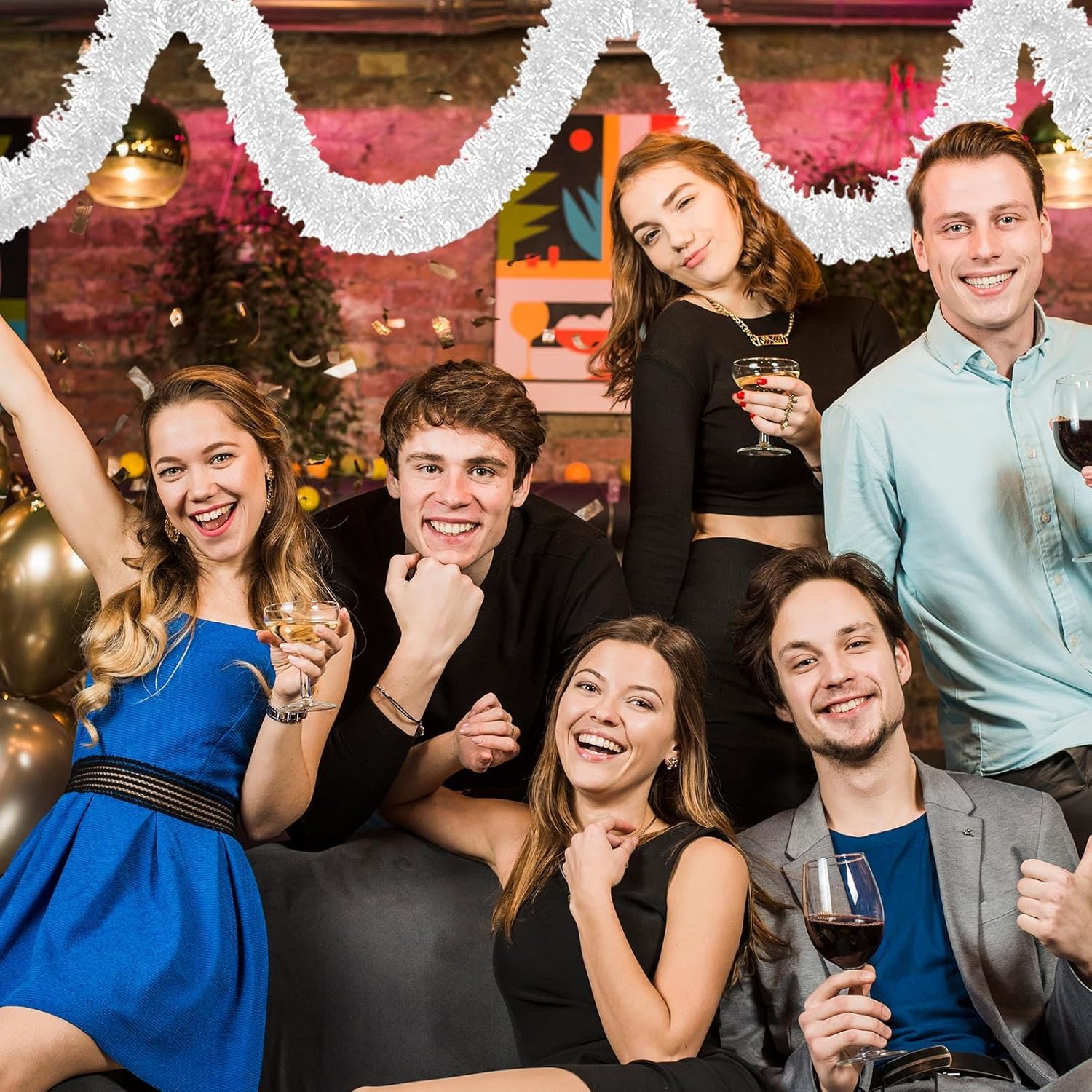 - Add Atmosphere: The metallic garland tinsel reflects light for extra sparkle, create an festive ambience and add more fun and energy to your special party events, you can use it as a background to take photos with your lover, kids, other family members, friends, relatives, classmates to celebrate important days