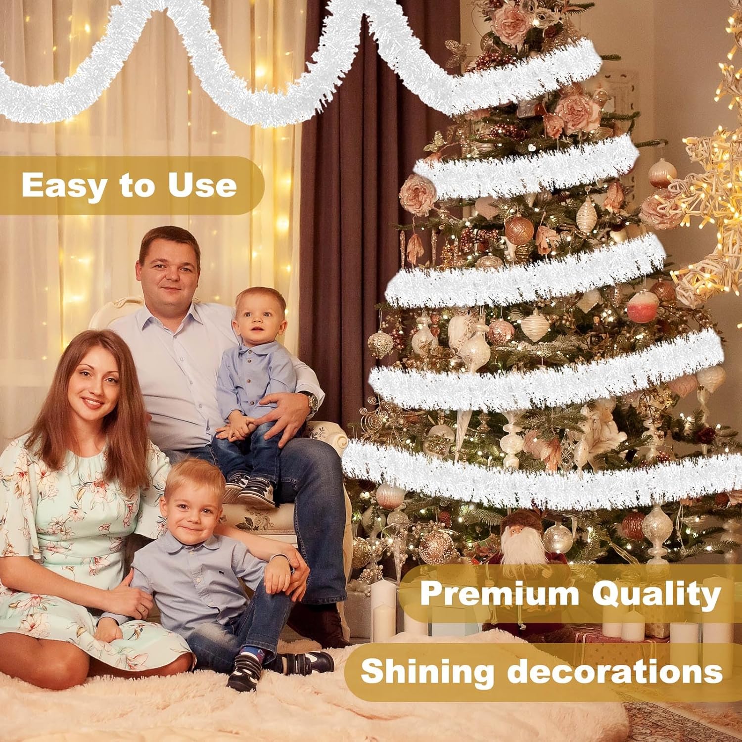 - Easy to Use: You can just hang the tinsel garland ornament on the christmas trees, not need many tools, and if you want to decorate them on the walls or stairs, you can use glue to stick them up, also use scissors to cut to the right length, twist them into various shapes as you like, then hang on to make your home full of joyful feelings