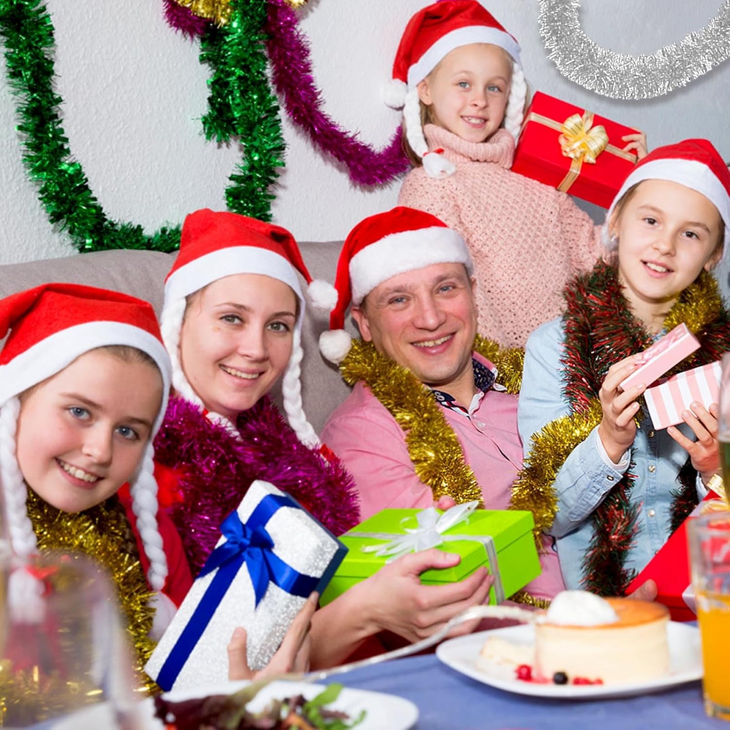 - Add Atmosphere: The metallic garland tinsel reflects light for extra sparkle, create an festive ambience and add more fun and energy to your special party events, you can use it as a background to take photos with your lover, kids, other family members, friends, relatives, classmates to celebrate important days