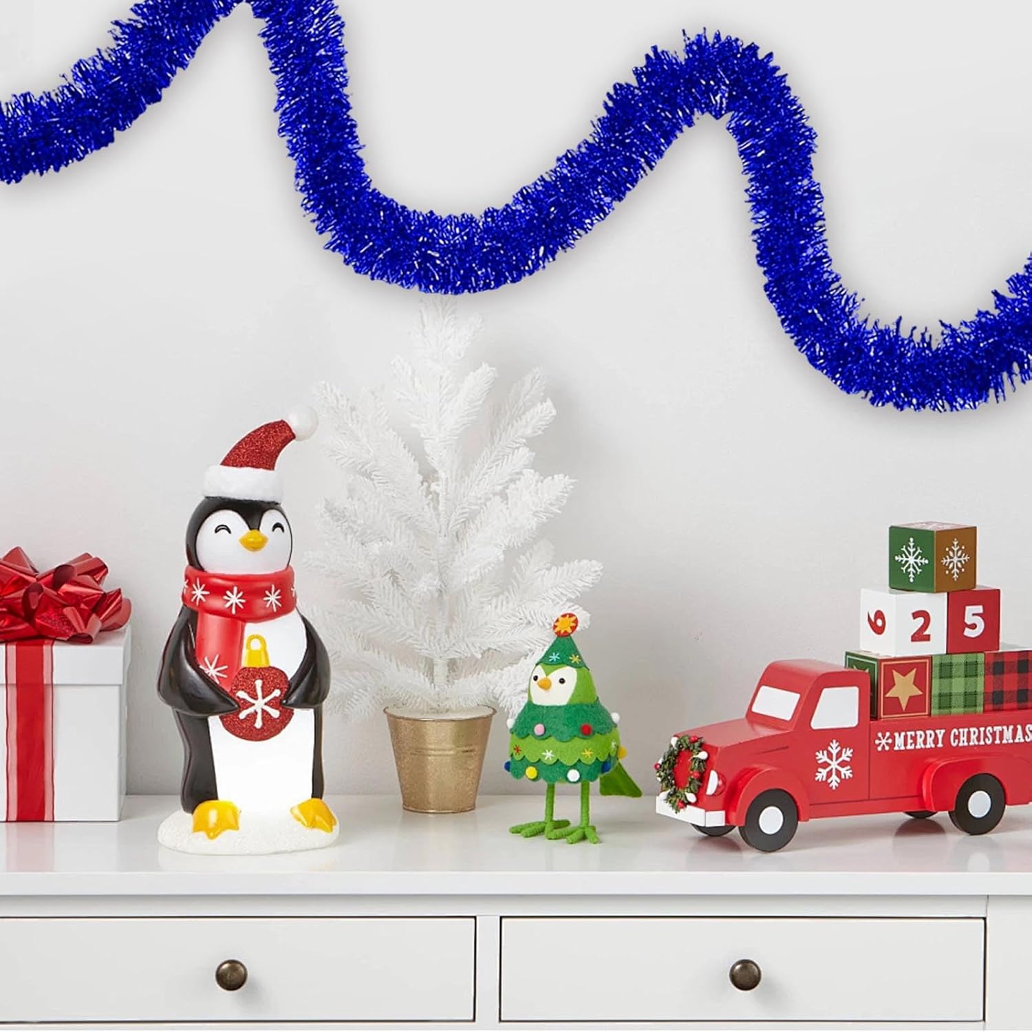 - Quality Material: tree garland Christmas decoration is made from quality PET material that ensures durability and long lasting use; This lightweight yet waterproof tinsel offers you a gorgeous decoration that can provide you with a comfortable decorating experience.