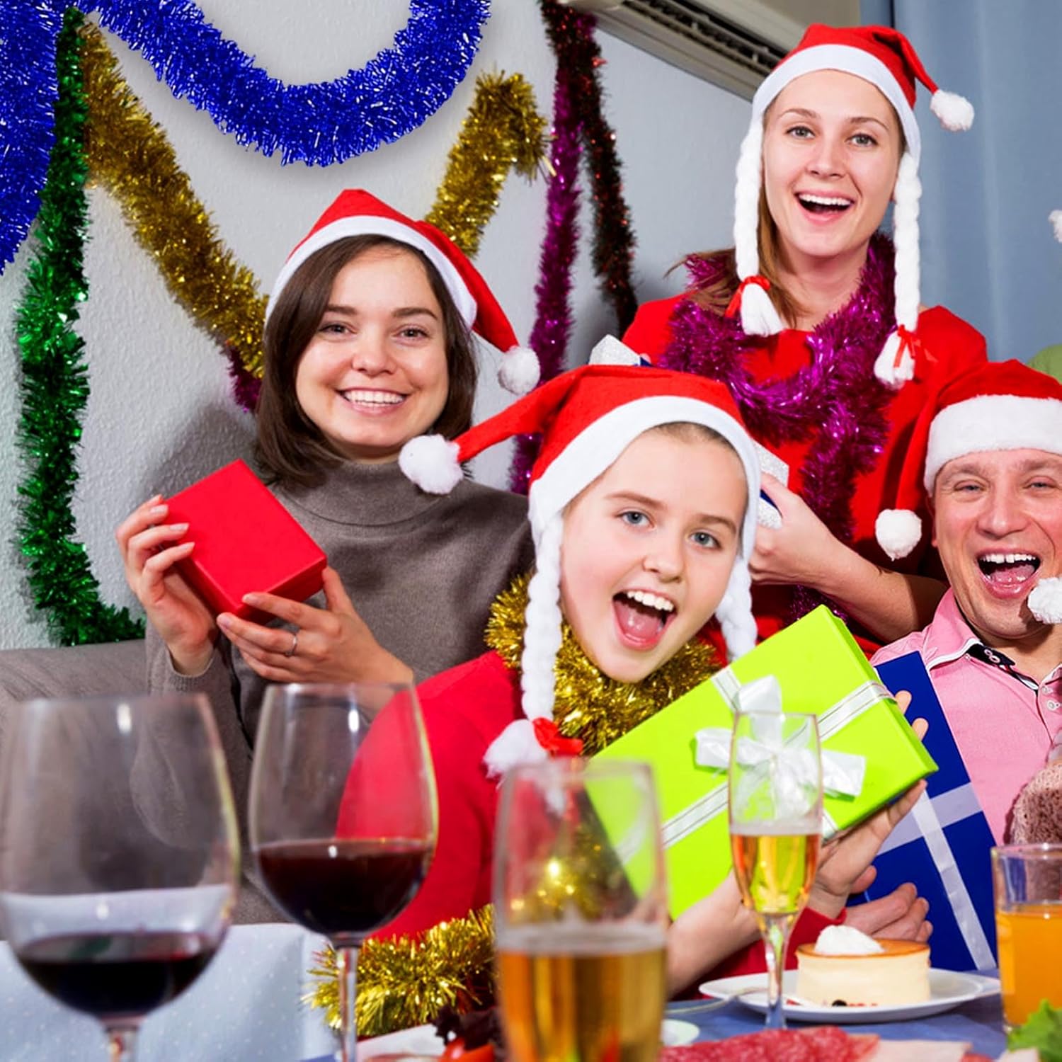 - Applicable Occasions: with exquisite workmanship, these glitter tinsel twist garlands can be hung on your walls, trees, or others; So you can use them to decorate your photo frames, garlands, gift wrapping, decorating tables, Christmas trees, home stairs, and more. This shiny tinsel Foil Fringes garlands is also Perfect for parade floats, as shiny tassel banner, use to run along the top of a backdrop or anywhere you want to add shimmer.
