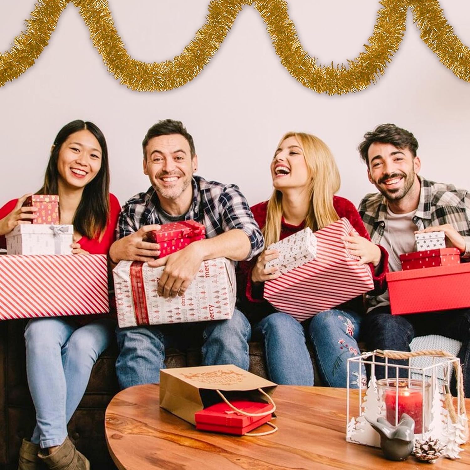 - Applicable Occasions: with exquisite workmanship, these glitter tinsel twist garlands can be hung on your walls, trees, or others; So you can use them to decorate your photo frames, garlands, gift wrapping, decorating tables, Christmas trees, home stairs, and more. This shiny tinsel Foil Fringes garlands is also Perfect for parade floats, as shiny tassel banner, use to run along the top of a backdrop or anywhere you want to add shimmer.