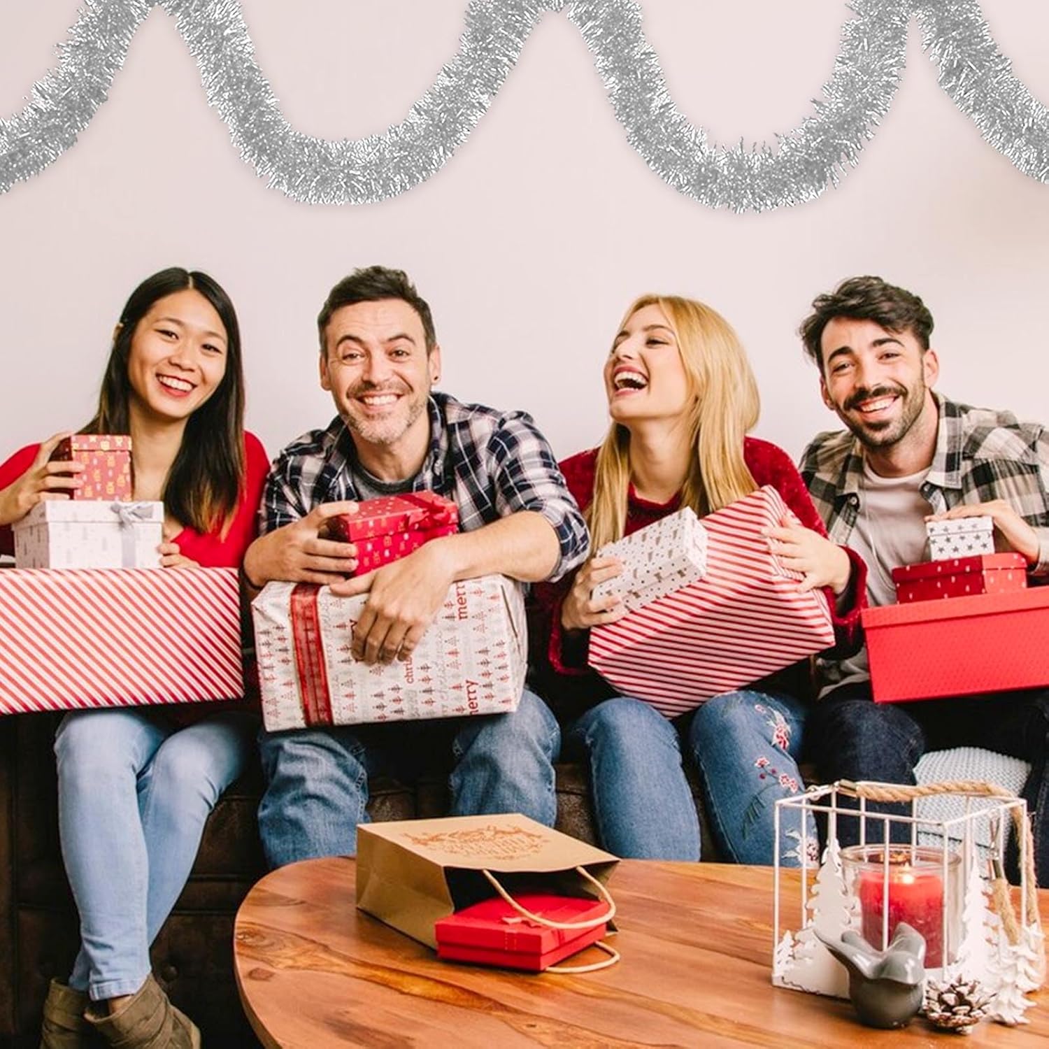 - Applicable Occasions: with exquisite workmanship, these glitter tinsel twist garlands can be hung on your walls, trees, or others; So you can use them to decorate your photo frames, garlands, gift wrapping, decorating tables, Christmas trees, home stairs, and more. This shiny tinsel Foil Fringes garlands is also Perfect for parade floats, as shiny tassel banner, use to run along the top of a backdrop or anywhere you want to add shimmer.