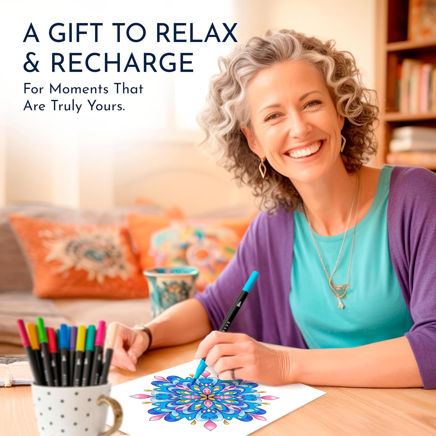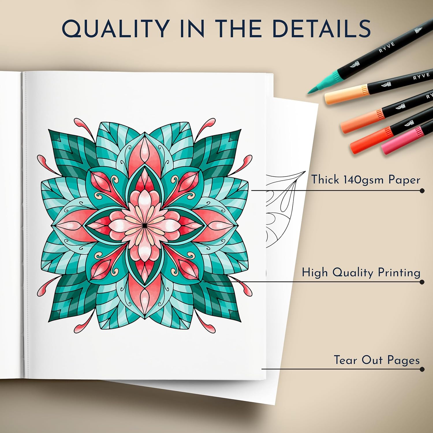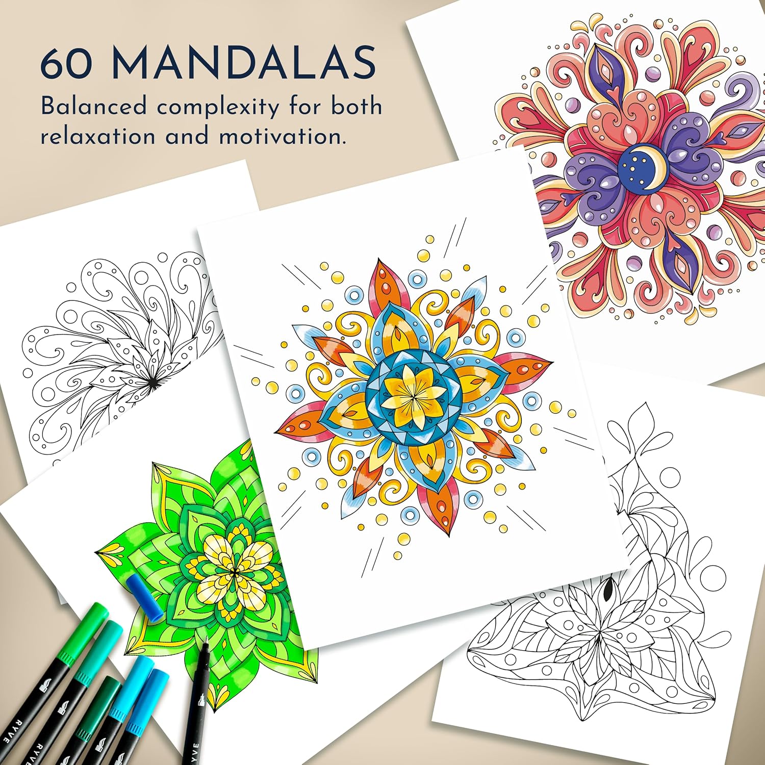 RYVE Mandala Coloring Book for Adults (2 Pack) – 60 Unique Mandalas for Relaxation, Anxiety & Stress Relief – Mindfulness Adult Coloring Book for Women & Men, Inspirational Gifts for Women