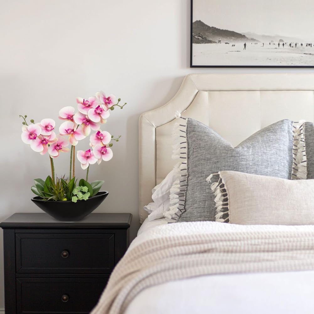 - Dimensions: Standing 17 inches high, the pink orchid flower arrangement includes a ceramic boat-shaped vase that measures 11 inches in diameter, making it an ideal size for various decor settings in both home and office environments.