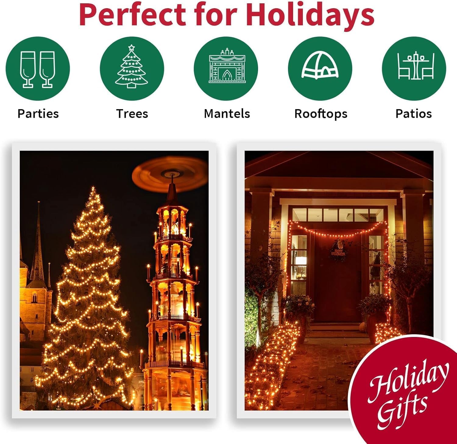 - Waterproof Outdoor String Lights: Our 100 LED waterproof string light has passed IP44 waterproof certification, it can resist water, perfect for indoor outdoor decorations, don't worry about using it in heavy rain and heavy snow, but warm tips please protect the plug.