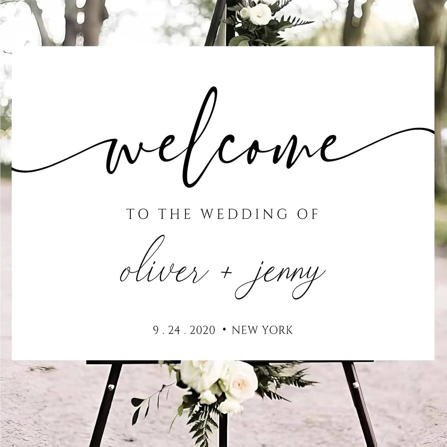 Generic Personalized Wedding Welcome Sign, Modern Minimalist, 18x27 inches, Plastic, Wedding Guestbook