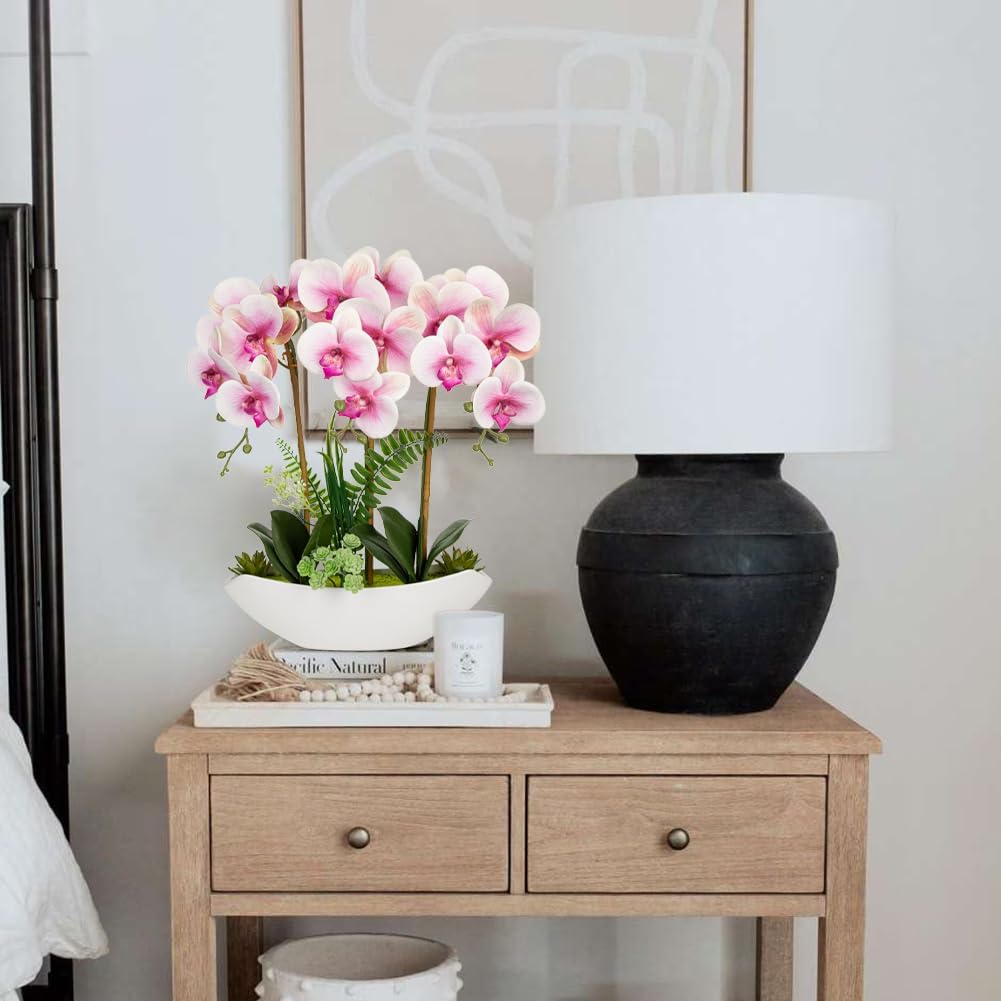 - Dimensions: Standing 18 inches high, the pink orchid flower arrangement includes a ceramic boat-shaped vase that measures 12 inches in diameter, making it an ideal size for various decor settings in both home and office environments.