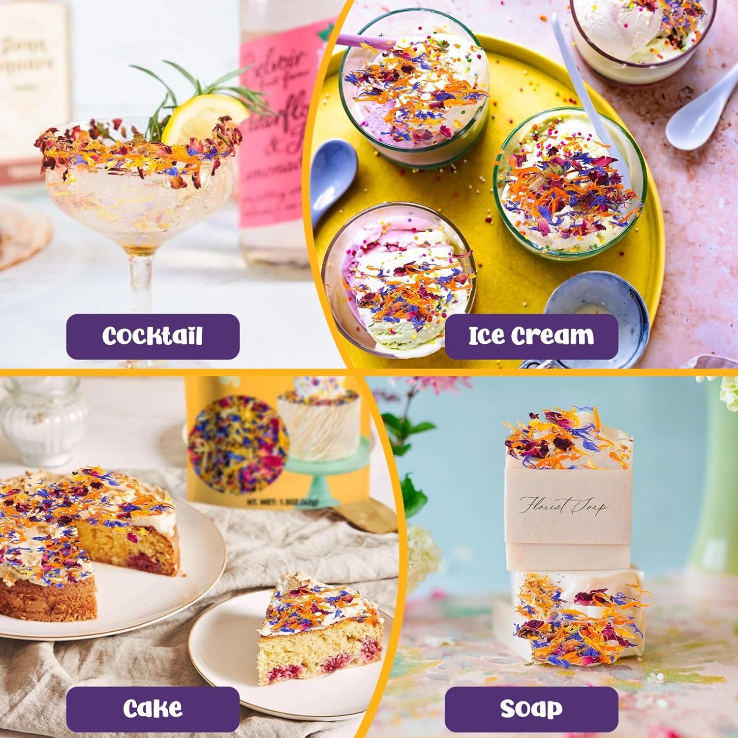 - SUPERB NATURAL DECOR IN VIBRANT COLORS - A mix of petals resembling a rainbow adds a dazzling touch to your food and DIY creations, allowing you to experience the beauty of nature and the joy of floral scents while enjoying your meals.