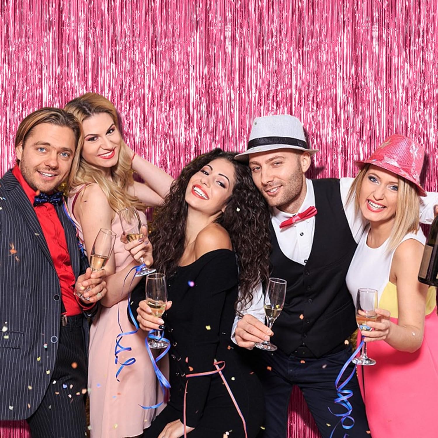 5 Pack Foil Curtain Backdrop Pink Metallic Tinsel Foil Fringe Curtains Photo Booth Props for Birthday Wedding Engagement Baby Shower Bachelorette Christmas Holiday Celebration Party Decorations