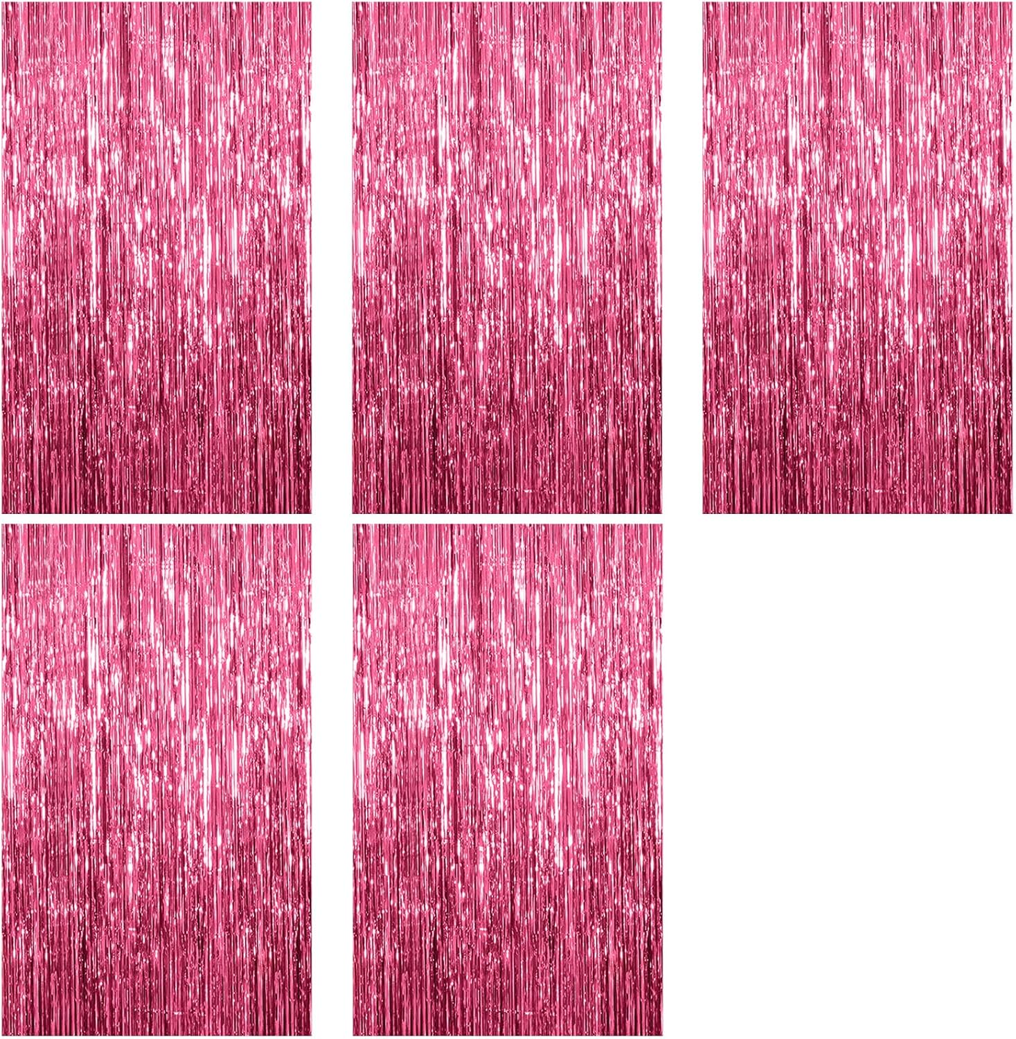 - Foil Fringe Backdrop Pink: 5Packs/Set, enough quantity for your party decoration. Each pack curtains size is 3.28 ft x 6.56 ft, enough length for decorate your party. Perfect accessories for decorating doors and walls.