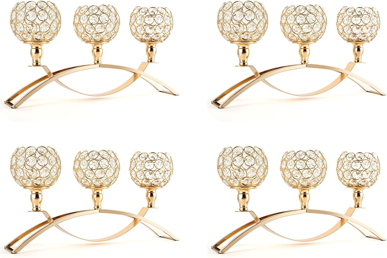 VINCIGANT 4Pcs Christmas Table Decoration Gold Bulk Decorative Tealight Candle Holder for Wedding,3-Candle Candelabras for Christmas Party Dinning Room Table Centerpiece,Gift Boxed for Thanksgiving
