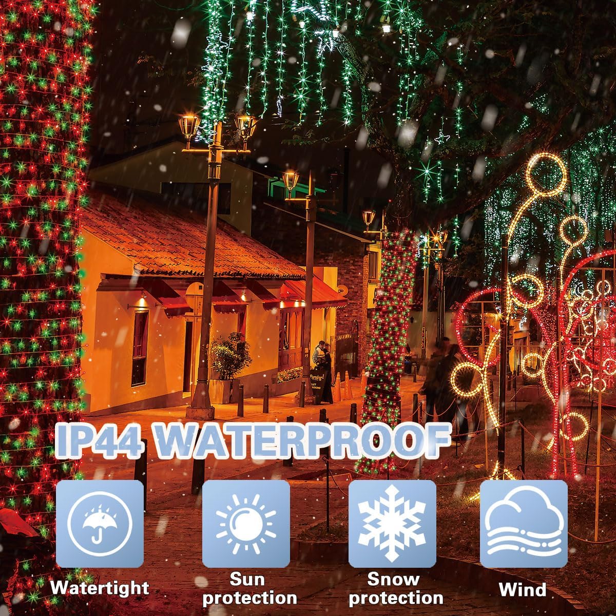 - Waterproof Outdoor String Lights: Our 200 LED waterproof string light has passed IP44 waterproof certification, it can resist water, perfect for indoor outdoor decorations, don't worry about using it in heavy rain and heavy snow, but warm tips please protect the plug.