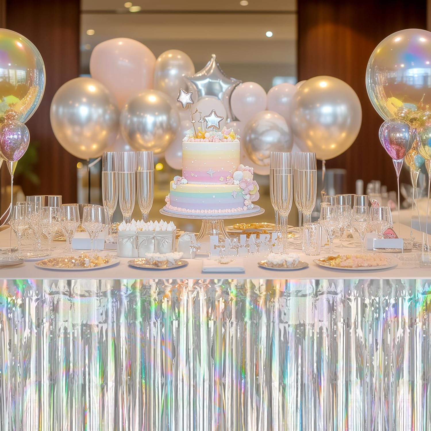 - Radiate in Every Light: Each holographic table skirt glows with different vivid colors depending on the lighting. Install is easy via adhesive backing - simply peel and stick for instant decor anywhere needed.