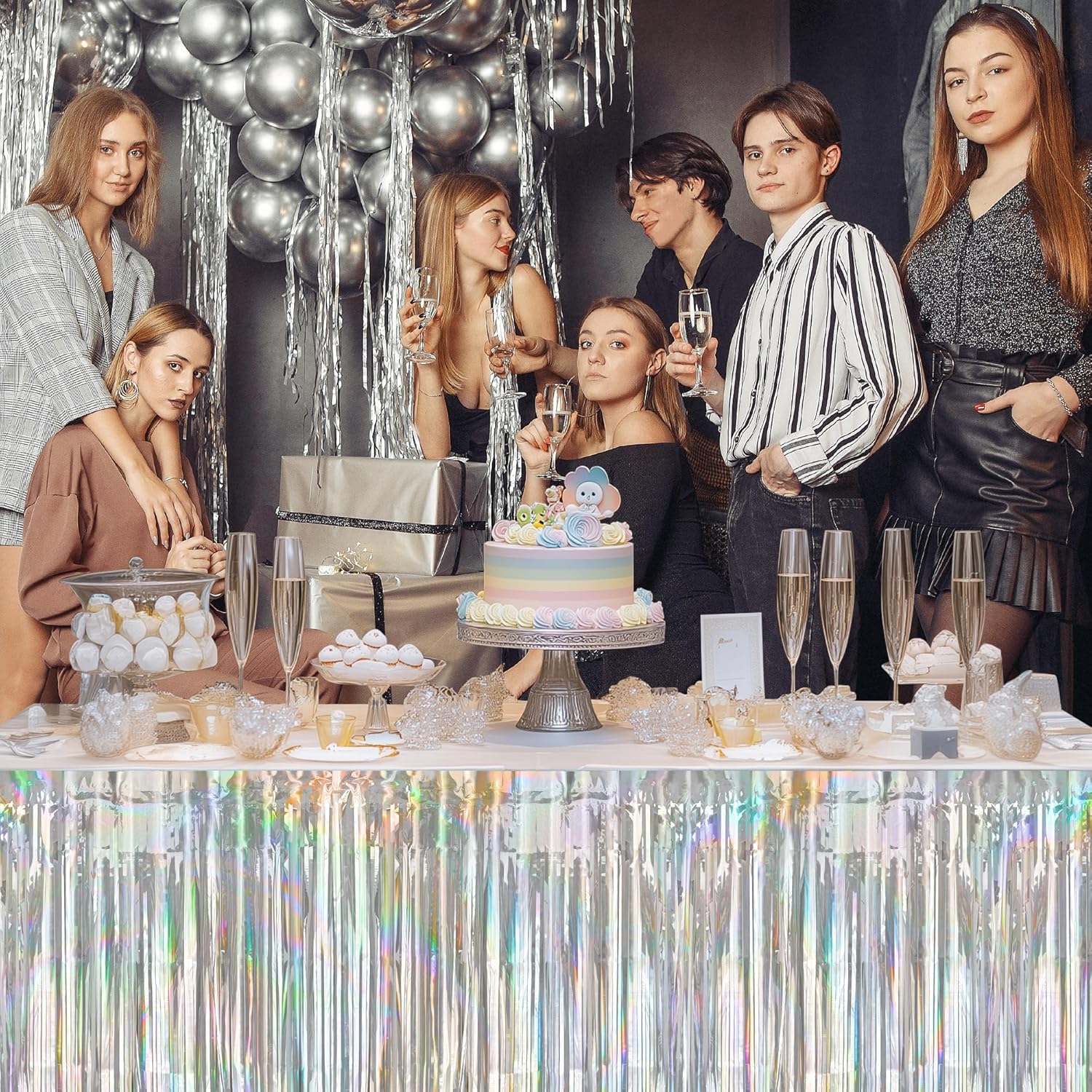 - Make a Spectacle of Color: Make your party a spectacular light show with our bundle of 2 Reversible Rainbow Table Skirts. Dazzle guests in vibrant, shimmering hues that shift in the light.