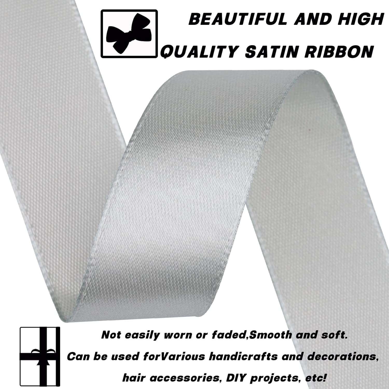 Silver Ribbon 7/8 Inch 30 Yards Satin Craft Ribbon-Single Face Polyester Ribbon for Handmade Roses,Gift Wrapping,Timeless Flower,Bouquets,Wedding and Party Decoration