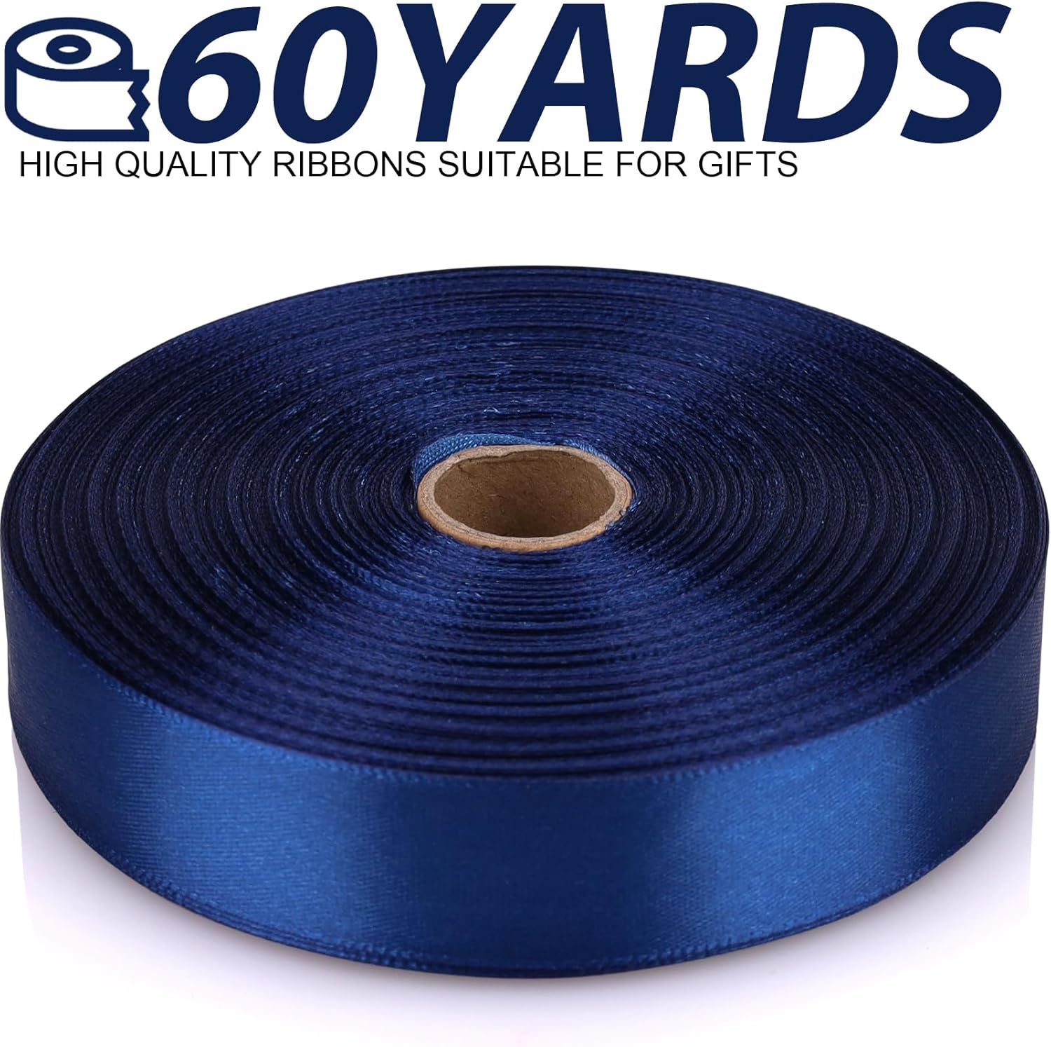 Deep Blue Ribbon 7/8 Inch 60 Yards Satin Craft Ribbon-Single Face Polyester Ribbon for Handmade Roses,Gift Wrapping,Timeless Flower,Bouquets,Wedding and Party Decoration