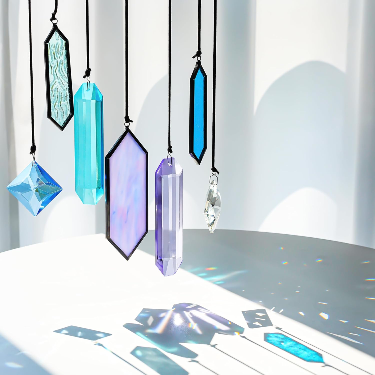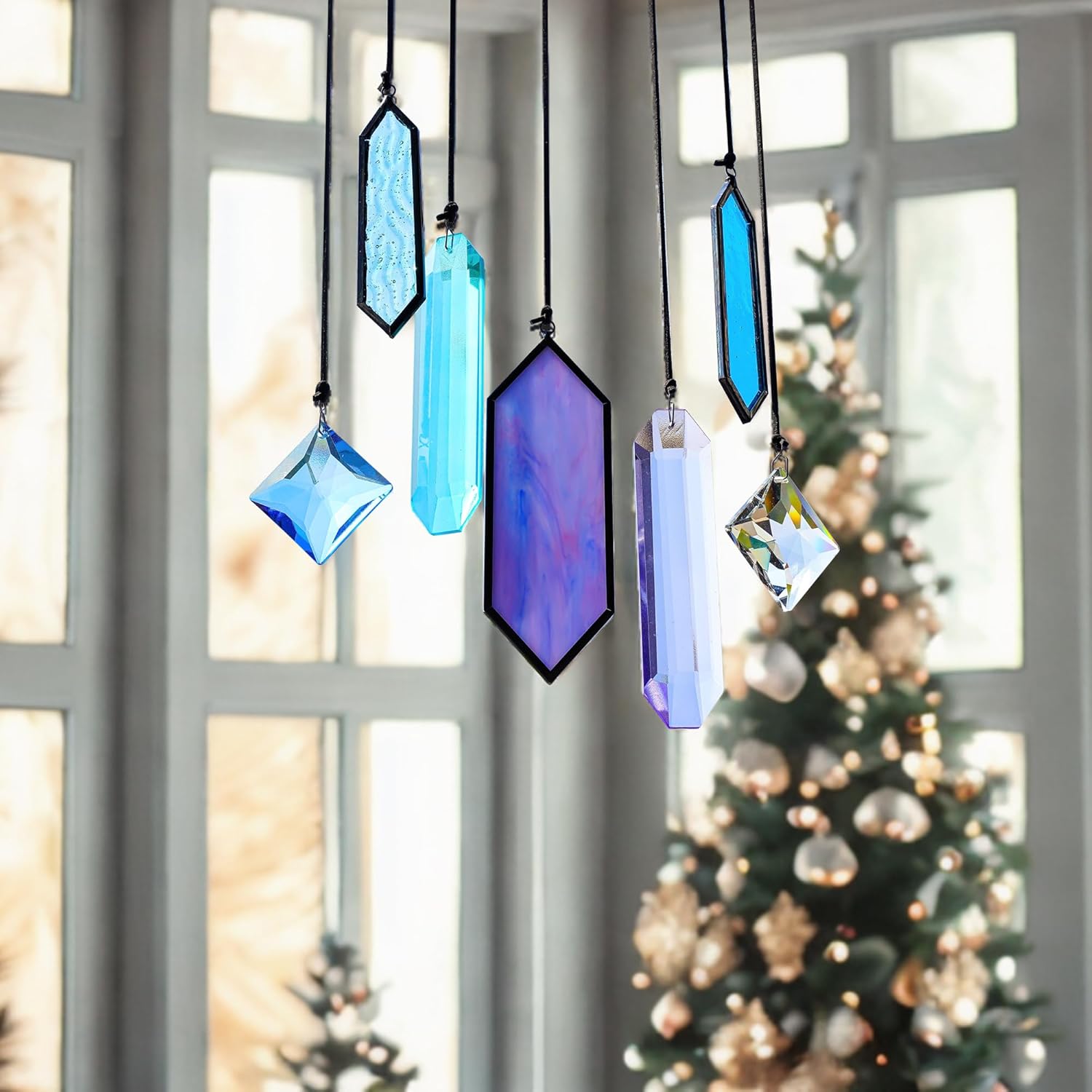 7 Pack Stained Glass Icicle Ornaments for Christmas Tree,Crystal Prism Hanging Suncatchers for Windows,Crystal Christmas Ornaments 2025 for Women