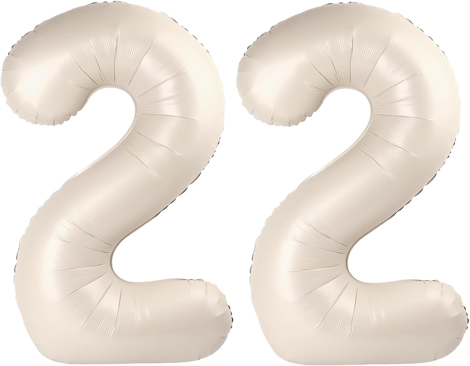 - 1.Elegant Understated Cream White Number Balloons:You will receive an uninflated 40 inch number 22 balloon.Balloons are always the best statement of romance and surprise.Big balloons symbolize vitality exoticism,adding glamour to 22nd birthday parties.Bright metallic cream white and huge size make number 22 balloon cream white a highlight of special parties.Choose one or more cream white numbers from 0-9 balloon,and use 22 balloons bulk to create a lively and charming birthday party!