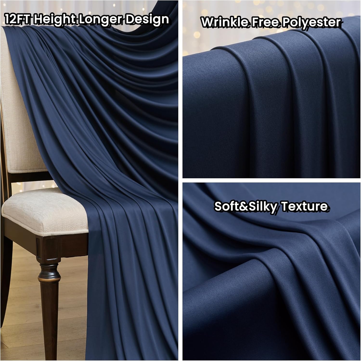 - Wrinkle Free Navy Blue Backdrop Curtain: This Navy Blue silky soft wedding backdrop for reception is made of wrinkle free material, known for its soft and silky texture, which will give you an extraordinary feeling of touch. The backdrop is exquisitely sewn, smooth and durable fpolyester with natural drape, add more elegance and romance to your weddings.