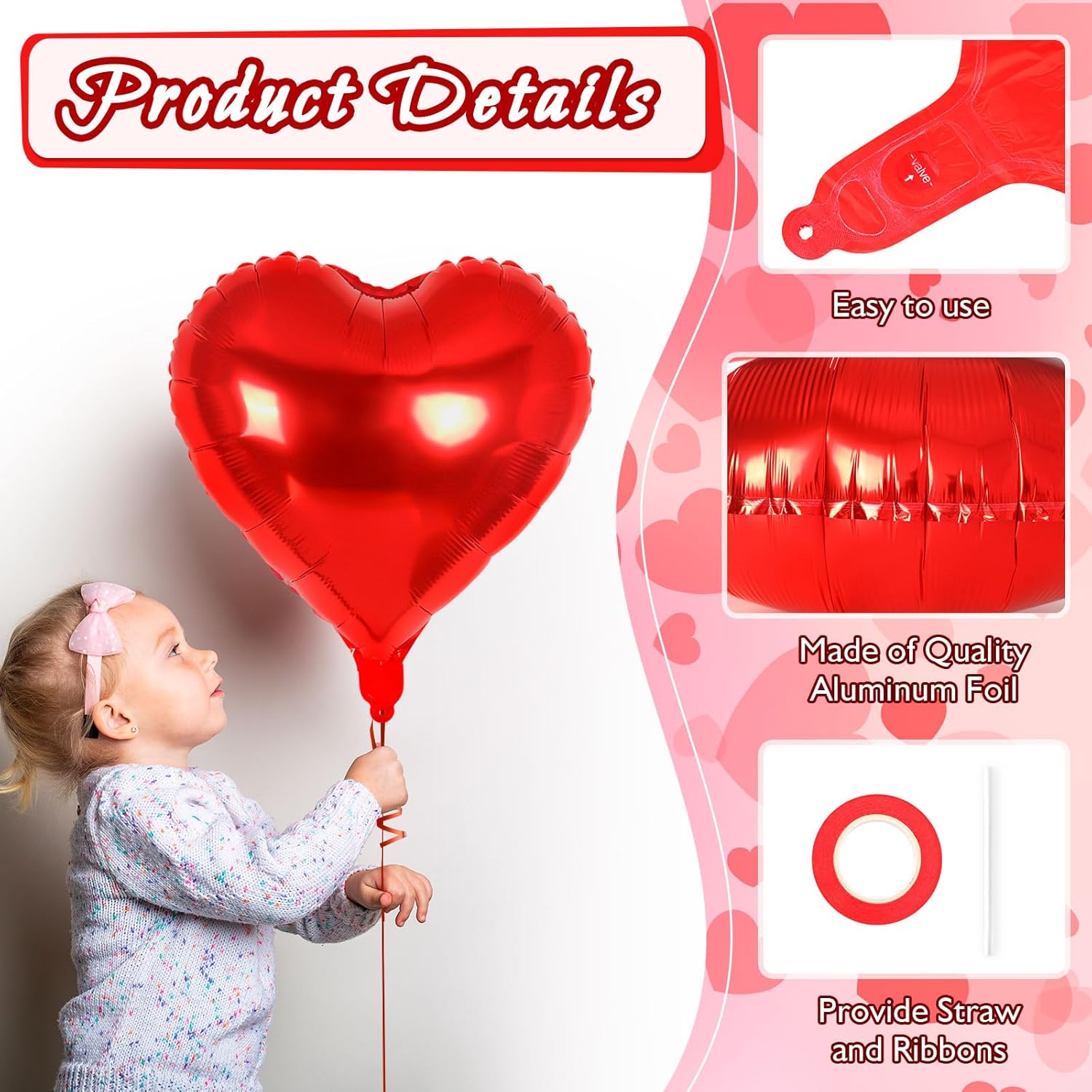 - Package includes: You will receive 24 pcs 18 inch heart foil balloons, a roll of ribbon, and a straw in sufficient quantity to meet your decoration needs. It is the perfect supplement to your party decoration, bringing surprises to guests and having a pleasant party time