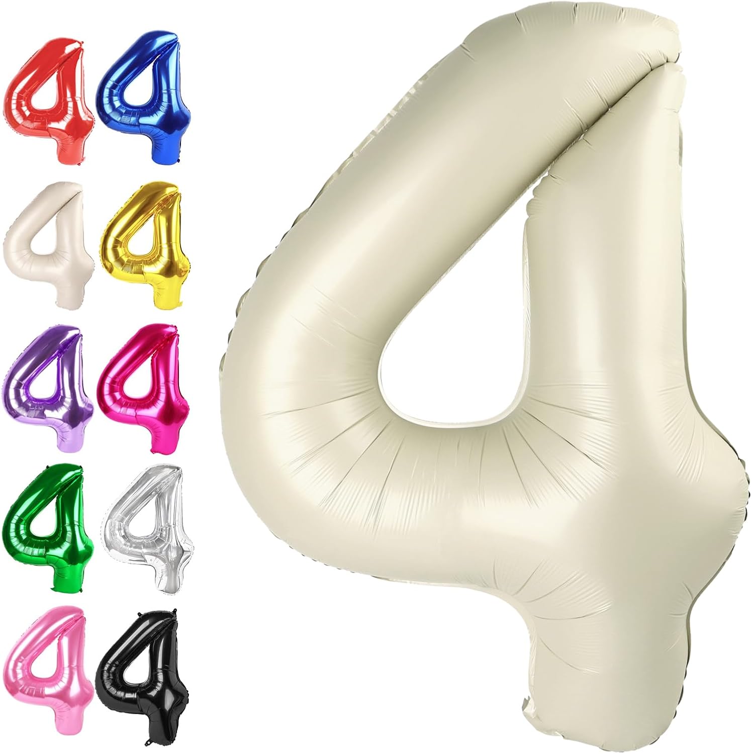 - 1.Elegant Understated Cream White Number Balloons: You will receive an uninflated 40 inch 4 balloon number. Big number balloons are always the best statement of romance and surprise. Number foil balloons symbolize vitality exoticism, adding glamour to birthday parties. Bright cream white and huge size make 4 white balloons a highlight of special parties. Choose one or more numbers from 0-9 number balloon, and use 4 14 24 34 44 54 64 84 94 birthday balloons to create a lively and charming party!