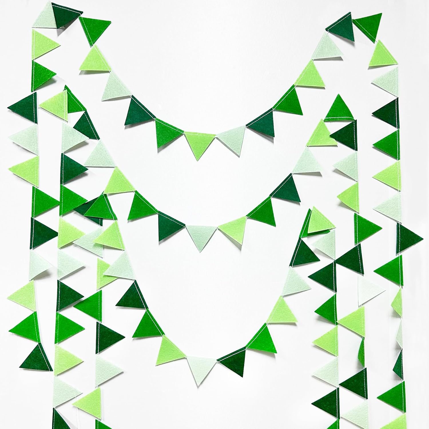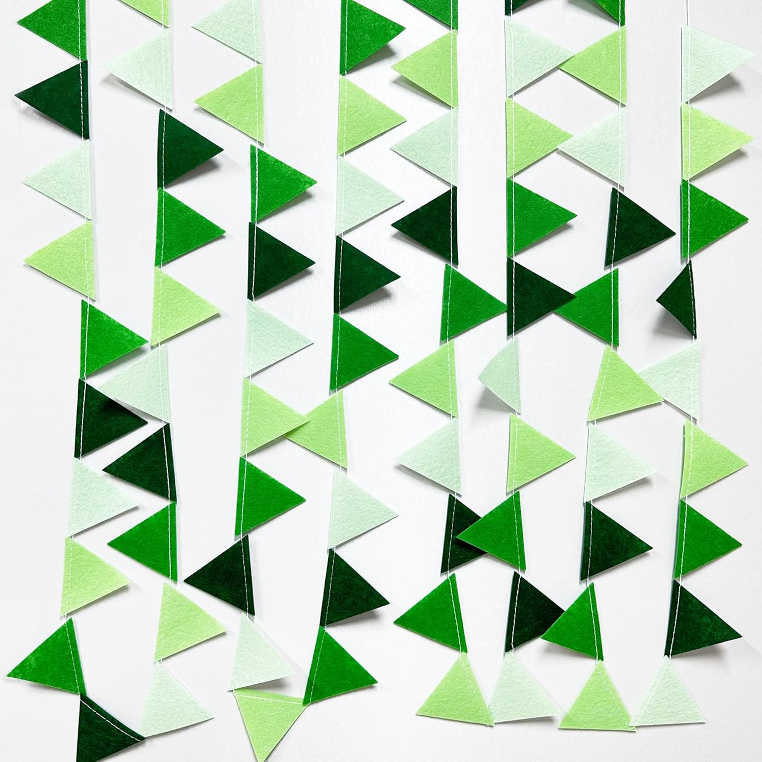 - 🟢Easy Assembly - Easy hanging and reusable.Perfect fit for gradient green party decor.unroll and unwrap garland carefully. due to delicate nature of thread,may tangle.This green mini triangle pennant makes an attractive backdrop for videos and photos.