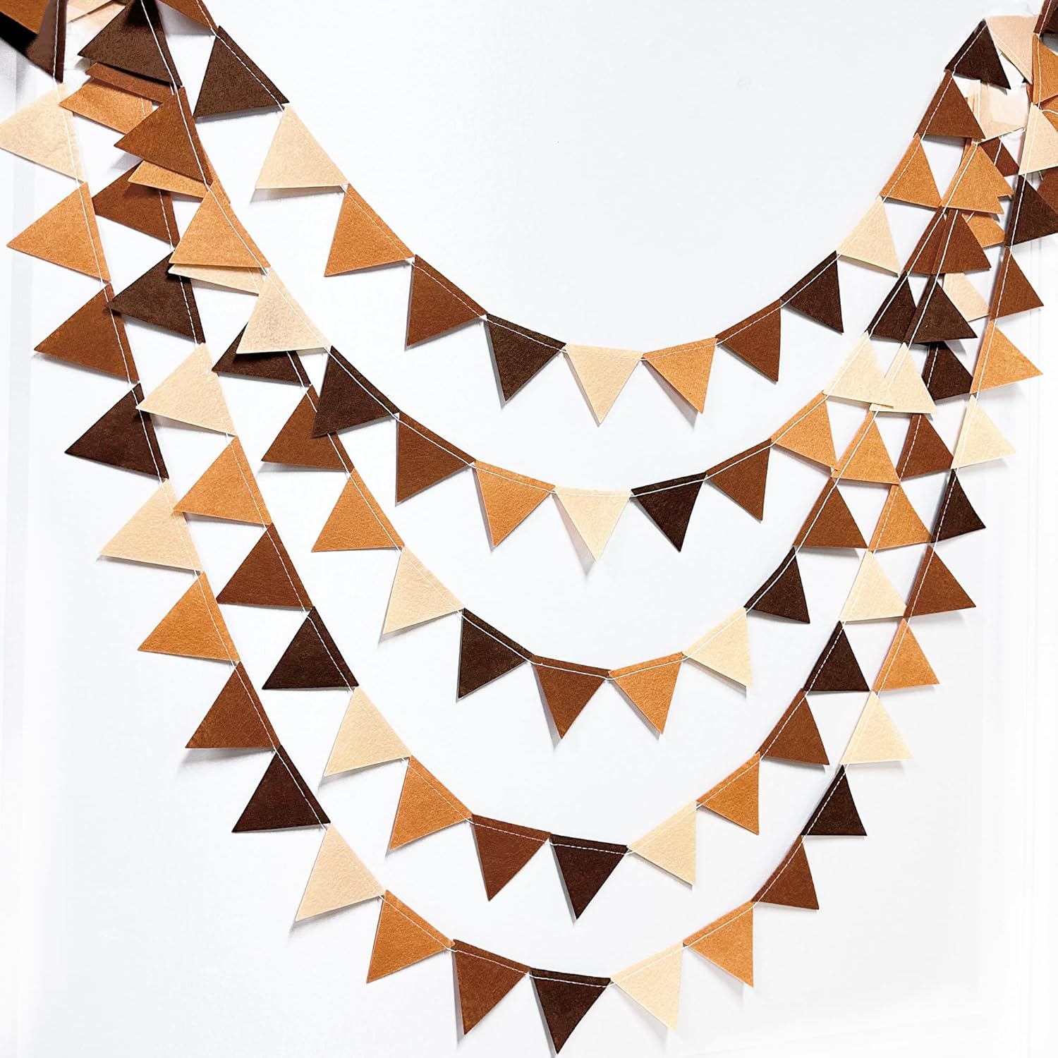 - Easy Assembly - Easy hanging and reusable.Perfect fit for brown party decor.unroll and unwrap garland carefully. due to delicate nature of thread,may tangle.This brown mini triangle pennant makes an attractive backdrop for videos and photos.
