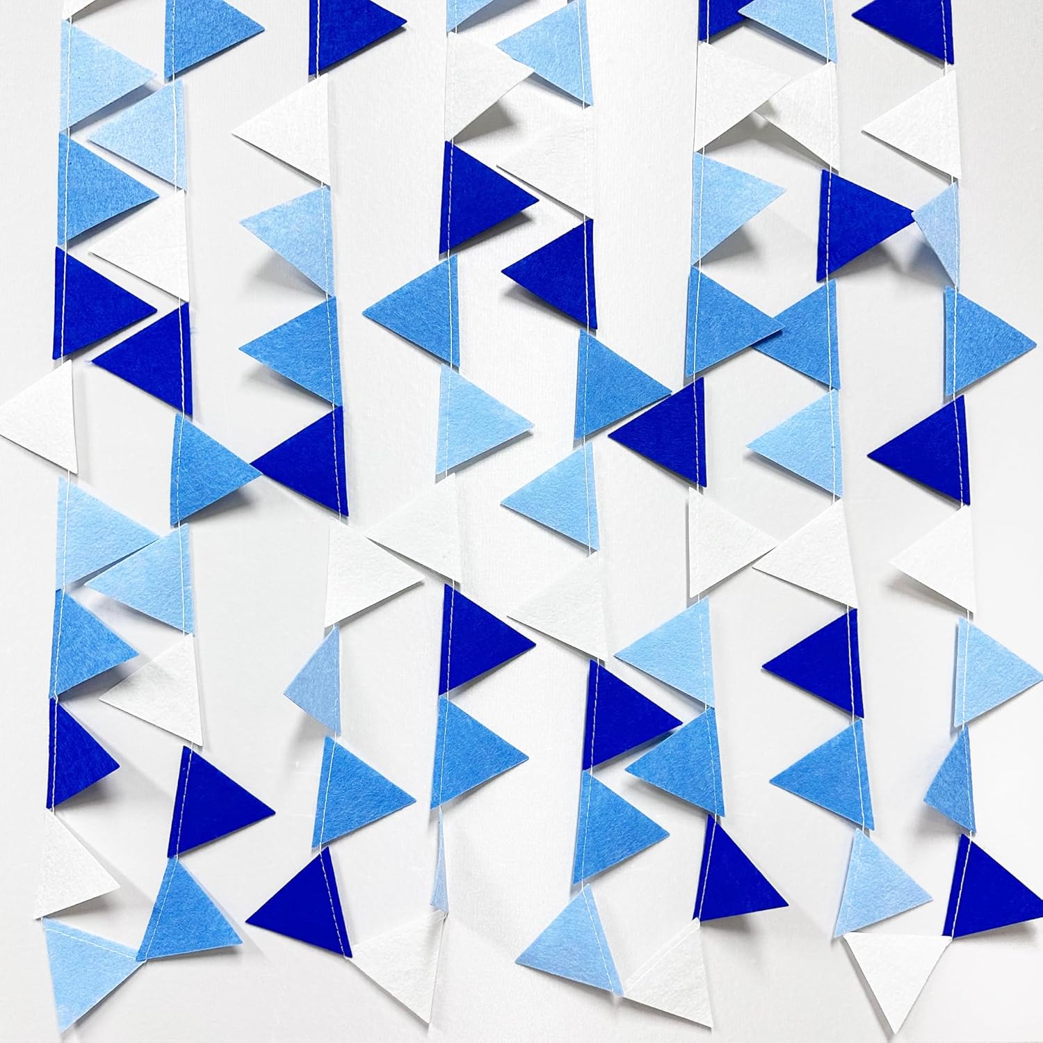Blue Party Decorations Felt Hanging Triangle Mini Bunting Pennant Banner Flag for Birthday Wedding Baby Shower Bridal Shower Engagement Under The Sea Nautical Ahoy Achor Party Classroom Nursery Decor